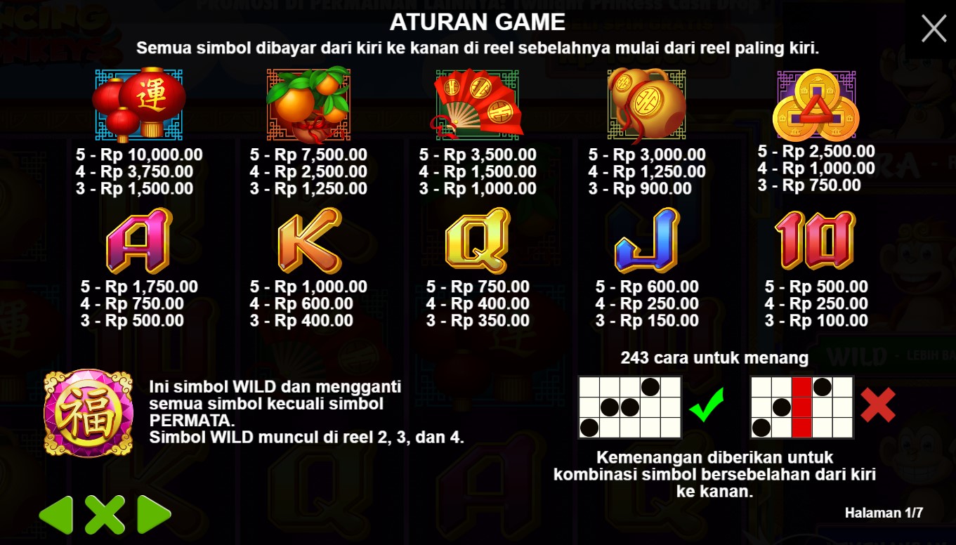 Paytable Slot Online Terpercaya 3 Dancing Monkeys