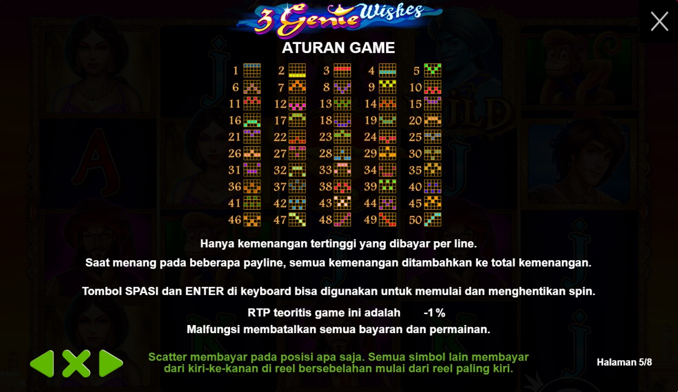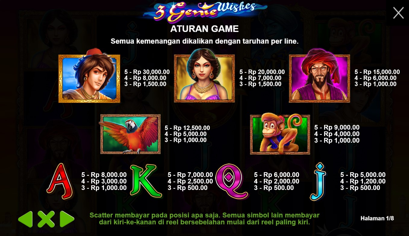 Paytable Slot Online Terpercaya 3 Genie Wishes