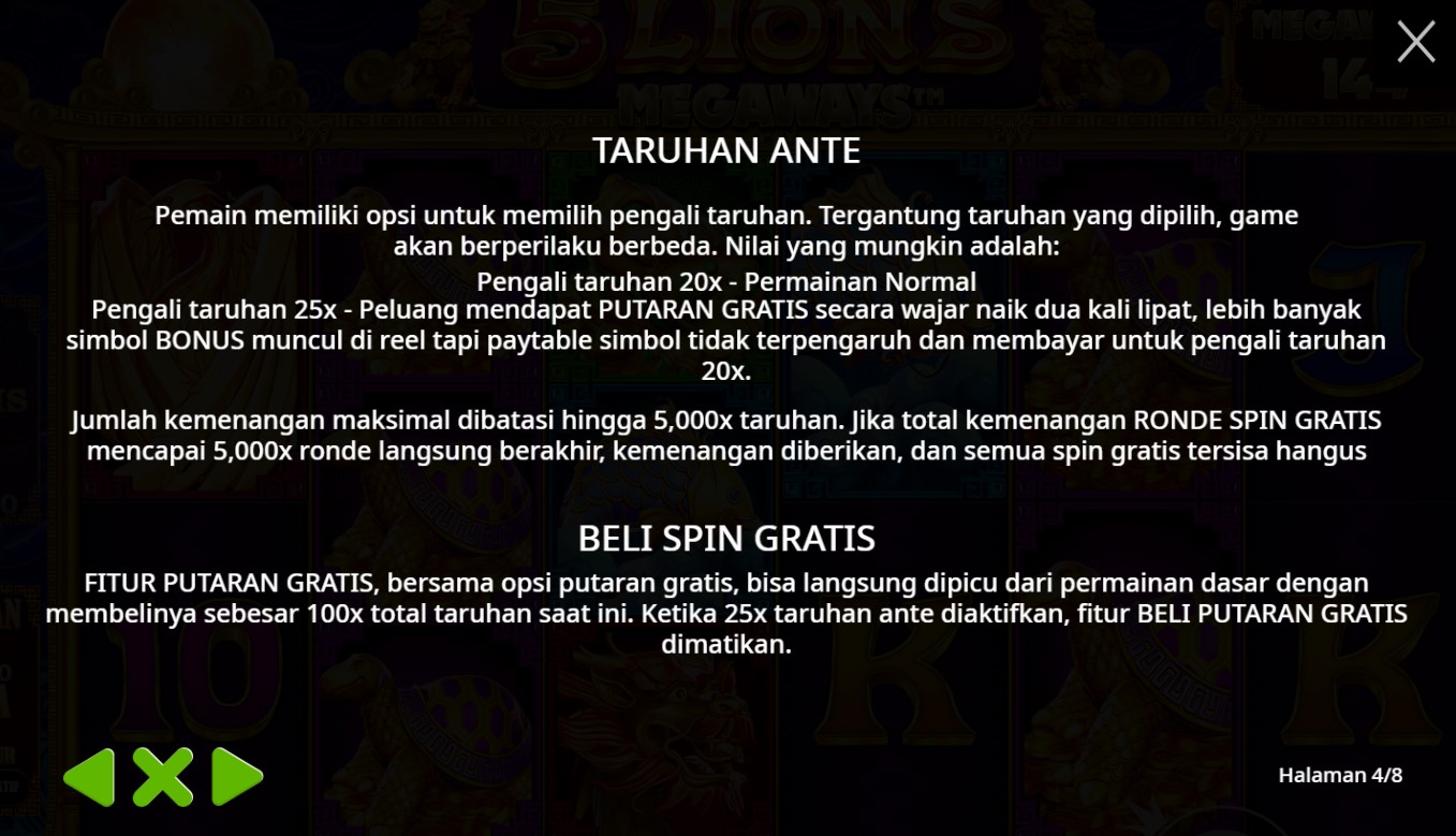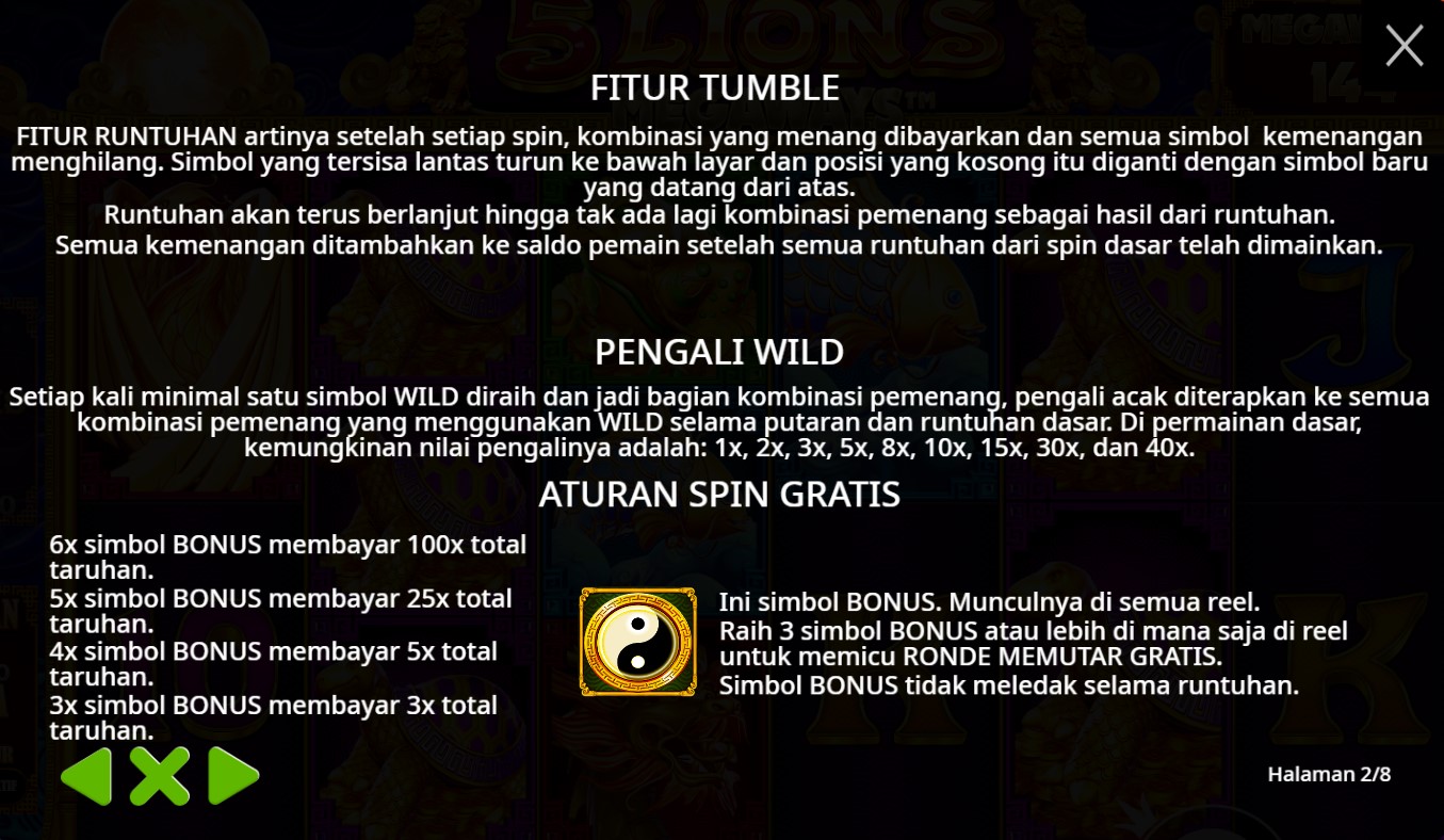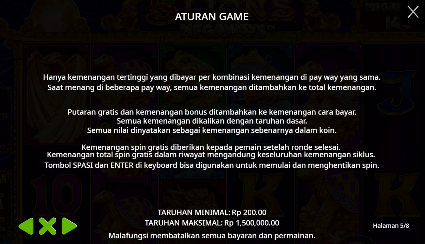 Paytable Slot Online Terpercaya 5 Lions Megaways