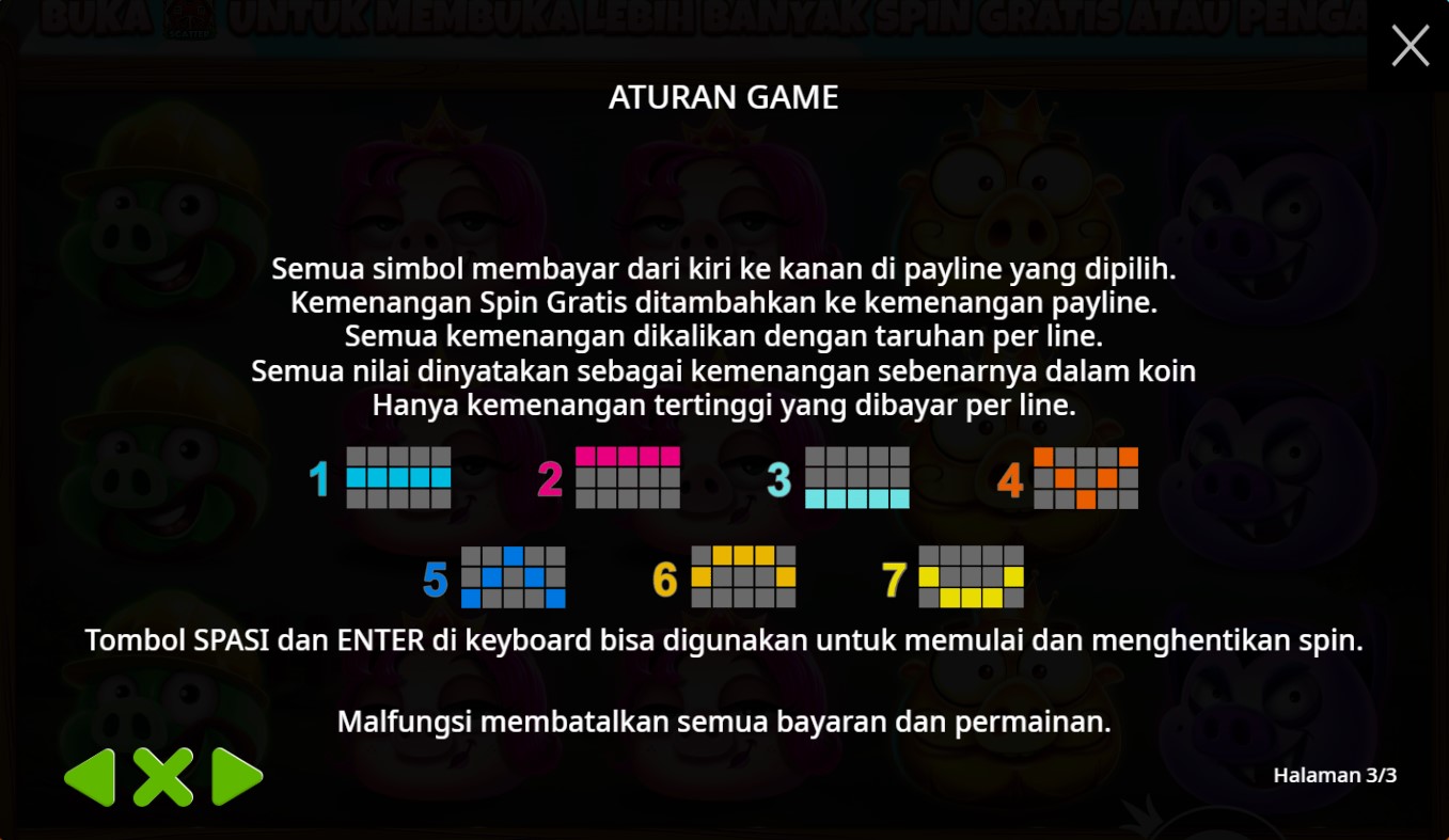 Dalam permainan slot "7 Piggies", terdapat berbagai simbol yang menambah keseruan dan peluang menang. Simbol utama adalah Piggy, yang menawarkan pembayaran tinggi bagi pemain yang berhasil mengumpulkannya. Selain itu, terdapat simbol Emas yang sering kali mewakili bonus atau jackpot, memberikan kesempatan tambahan untuk meraih kemenangan besar. Simbol Rumah biasanya memberikan nilai pembayaran menengah, sementara simbol Koin, meski memiliki nilai rendah, sering muncul dan dapat membantu membentuk kombinasi pemenang. Tidak ketinggalan, simbol Wild yang berfungsi menggantikan simbol lain untuk menciptakan kombinasi yang menguntungkan, serta simbol Scatter yang dapat memicu fitur bonus atau putaran gratis. Setiap simbol memiliki nilai pembayaran yang berbeda, sehingga penting bagi pemain untuk memahami paytable untuk memaksimalkan pengalaman bermain mereka.