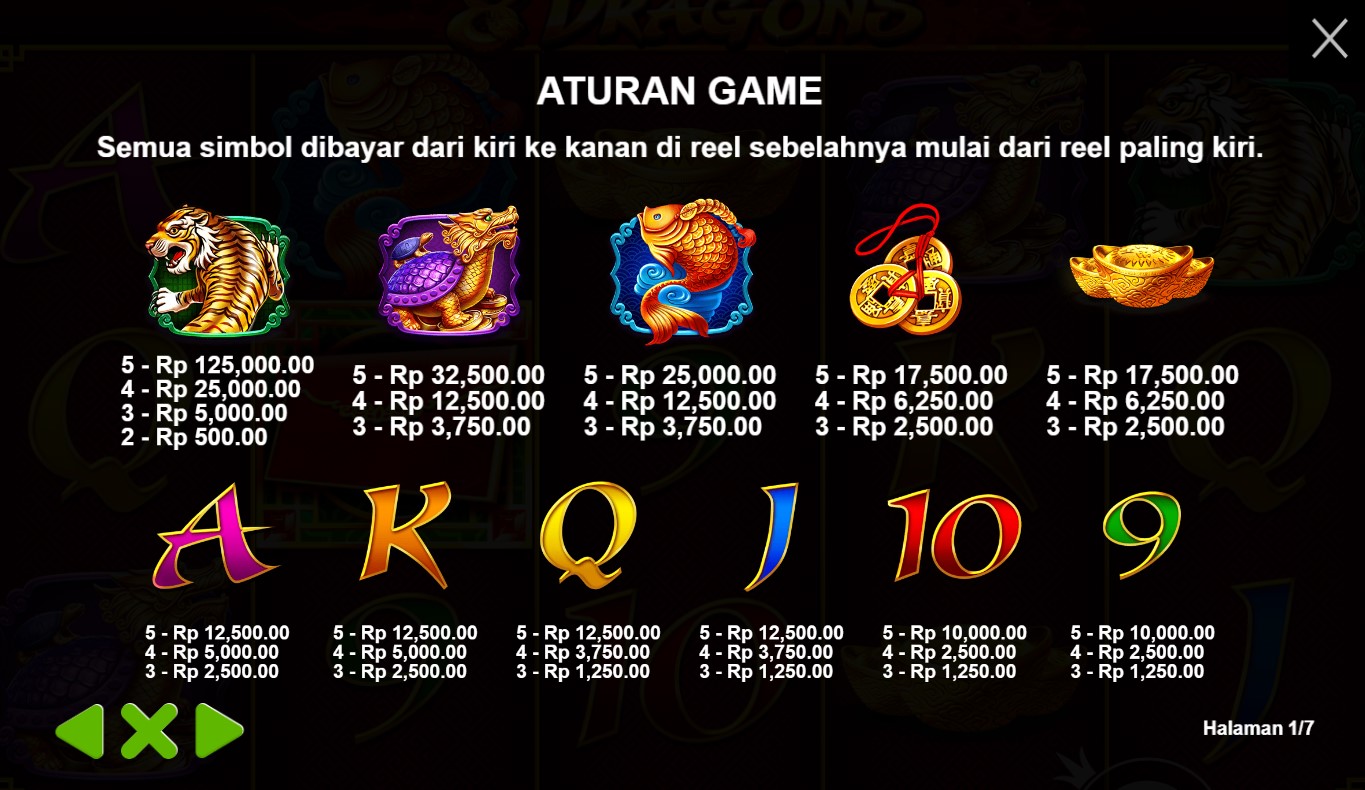 Paytable Slot Online Terpercaya 8 Dragons