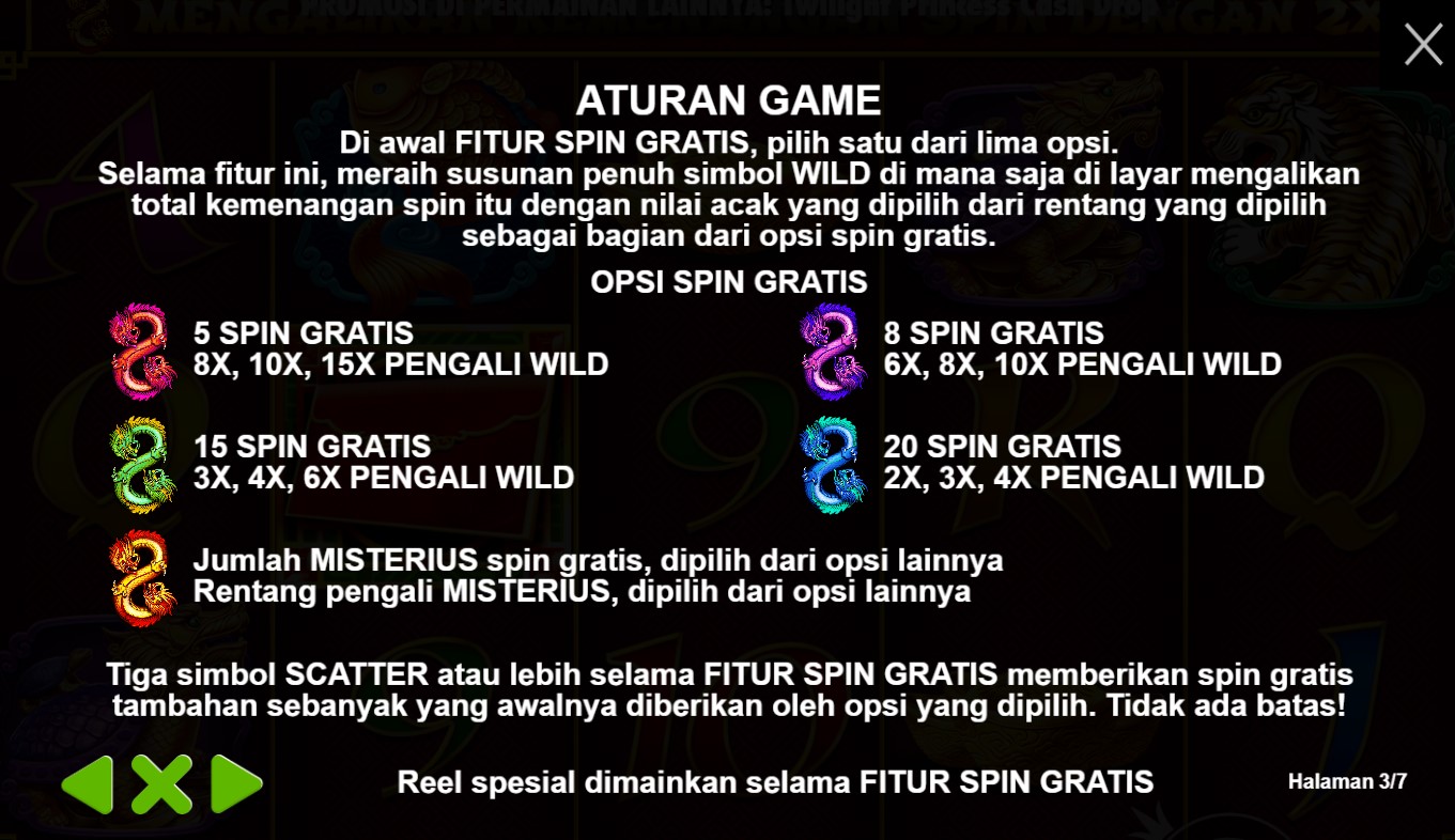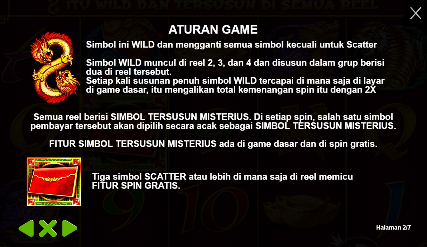 paytable yang menawan dari slot online terpercaya, 8 Dragons! Di dalam paytable ini, Anda akan menemukan rahasia kekayaan yang disembunyikan di antara simbol-simbol legendaris. Tiap simbol yang muncul di gulungan akan membawa Anda lebih dekat pada keuntungan yang tak terduga, dengan kombinasi yang memukau dan nilai taruhan yang menggiurkan. Jelajahi setiap detail paytable ini dan temukan kekuatan naga yang tersembunyi di balik setiap putaran. Bersiaplah untuk merasakan sensasi kemenangan yang mengagumkan dalam permainan 8 Dragons yang memikat ini.