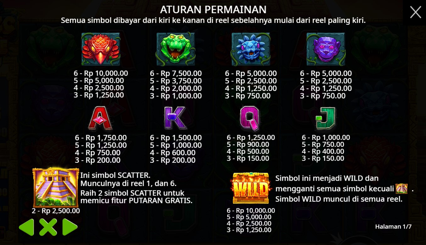 Paytable Slot Online Aztec Blaze adalah permainan yang menghadirkan kesempatan besar untuk meraih kemenangan besar. Dengan tema hutan magis yang memukau, game ini siap membawa pemain ke dalam petualangan mencari kekayaan yang mendebarkan. Simbol-simbol utama yang dapat ditemukan di dalam game meliputi ikon-ikon bertema alam, seperti macan tutul, burung hantu, dan bunga teratai. Selain itu, terdapat pula simbol kartu remi dari Ace hingga 10 yang turut berperan dalam pembentukan kombinasi pemenang. Simbol liar berupa karakter legendaris dan simbol scatter berbentuk batu permata menjadi komponen penting yang dapat memicu fitur-fitur bonus yang menguntungkan.