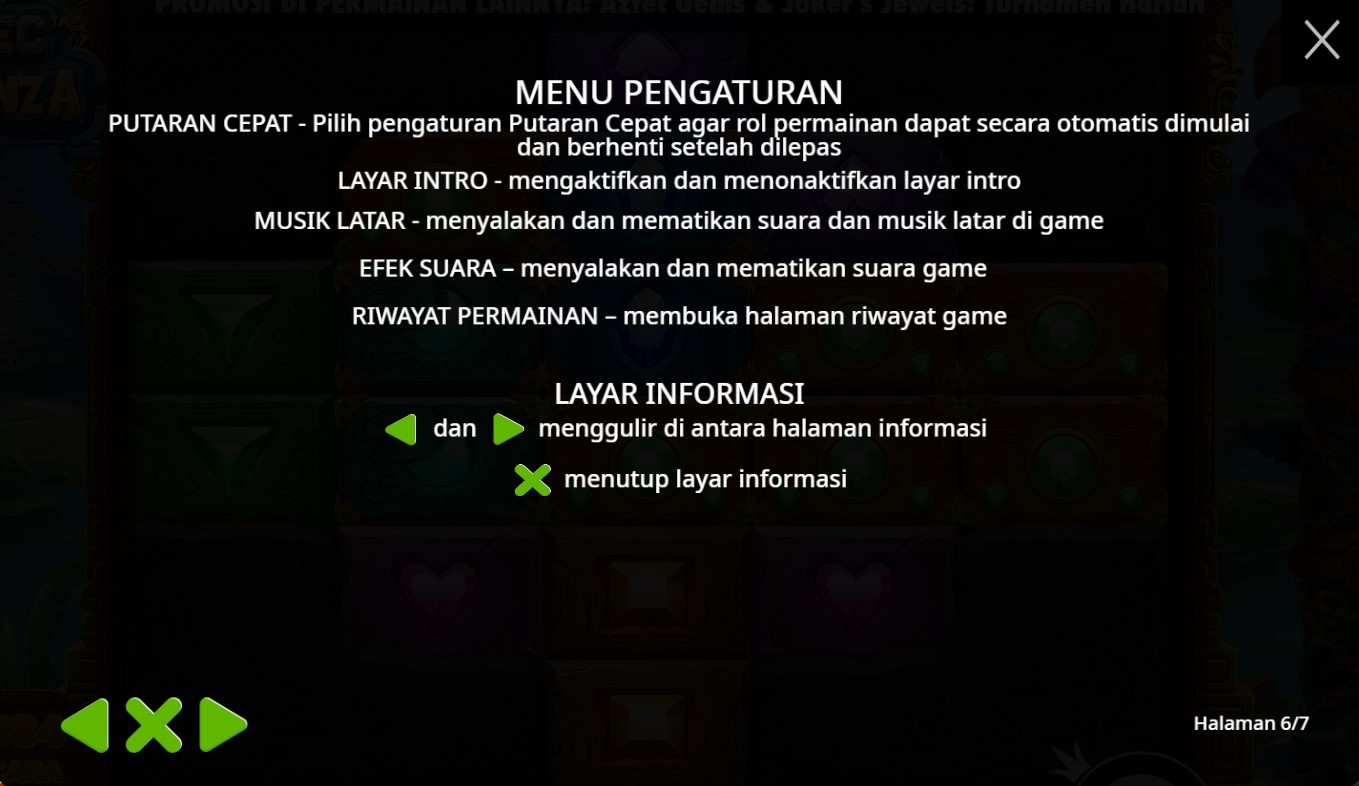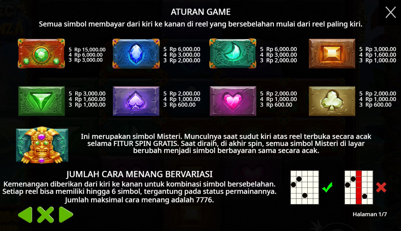 Paytable Slot Online Aztec Bonanza adalah kumpulan simbol yang mewakili keajaiban dan kekayaan dari peradaban Aztec. Simbol-simbol tersebut termasuk berbagai artefak berharga seperti kalung permata, topeng Aztec, dan harta karun kuno, semuanya menambahkan nuansa misteri dalam permainan. Selain itu, simbol panah dan keping emas juga memiliki nilai yang tinggi dalam pembayaran. Tidak hanya itu, game ini juga dilengkapi dengan simbol Special seperti Wilds dan Scatters yang memicu fitur-fitur bonus menarik. Wilds dapat menggantikan simbol lain untuk membentuk kombinasi pemenang, sementara Scatters biasanya memicu putaran Free Spins atau fitur bonus lainnya. Dengan kombinasi simbol-simbol yang beragam dan menguntungkan, pemain dapat menikmati pengalaman bermain yang seru dan berpotensi untuk meraih kemenangan besar. Segera telusuri kekayaan dunia Aztec dan temukan keberuntungan Anda di Aztec Bonanza!