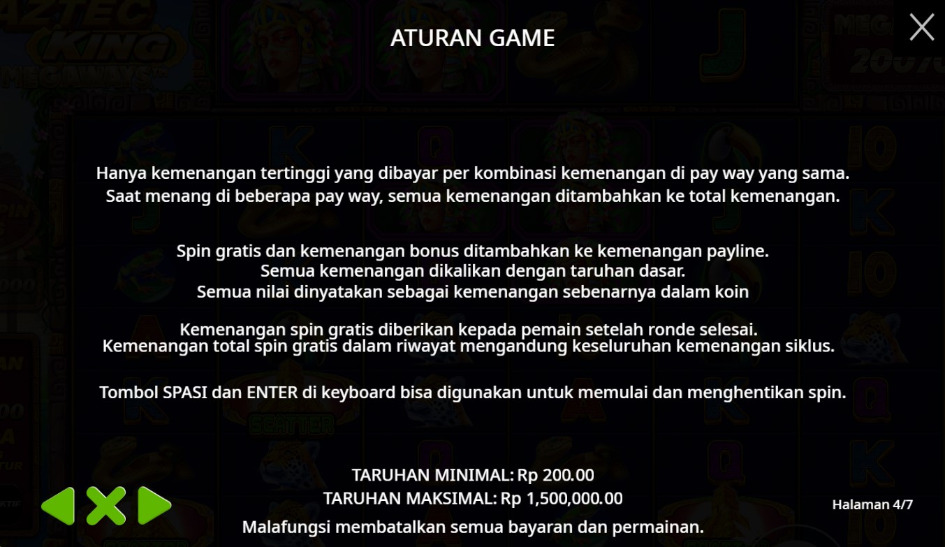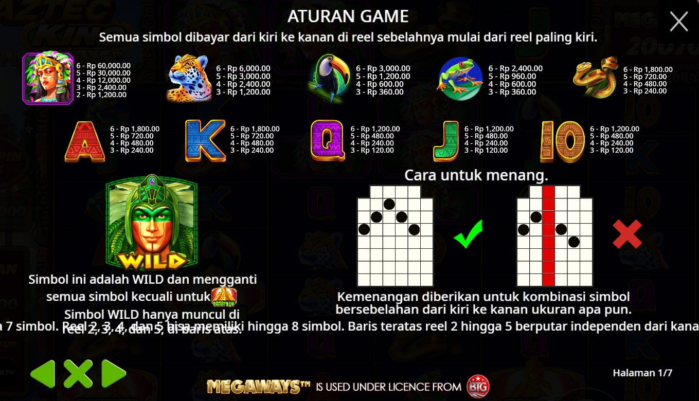 Paytable Slot Online Terpercaya Aztec King Megaways