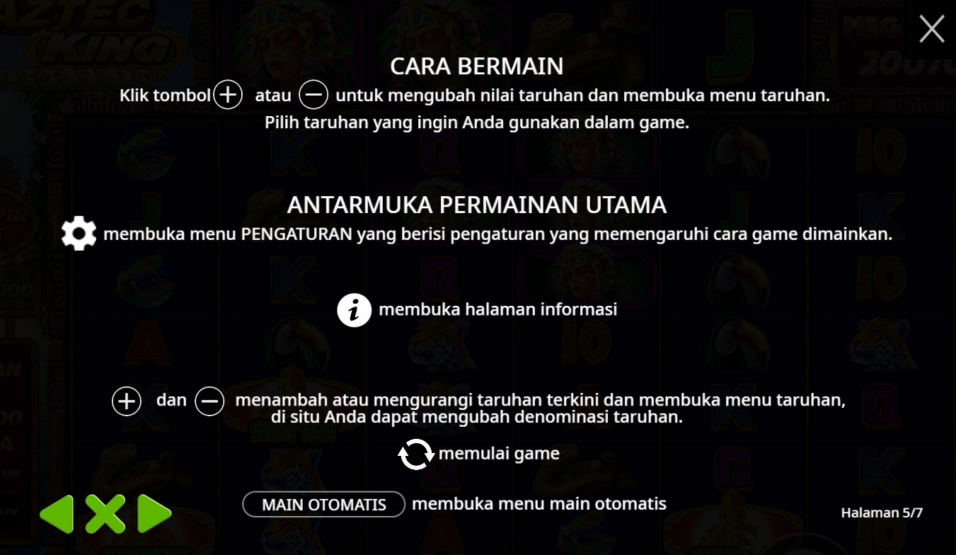 Paytable Slot Online Aztec King Megaways adalah koleksi simbol-simbol misterius dan kaya dari peradaban Aztec yang memikat. Dalam permainan ini, pemain akan menemui simbol-simbol khas Aztec seperti ikon-ikon kekayaan, senjata-senjata kuno, artefak-arkefak bersejarah, serta karakter-karakter legendaris. Simbol yang dimiliki game ini termasuk keping emas, kalung permata, topeng Aztec, senjata panah, dan harta karun kuno. Selain itu, terdapat juga simbol Special seperti Wilds dan Scatters yang memiliki peran penting dalam mengaktifkan fitur-fitur bonus menarik dalam permainan.