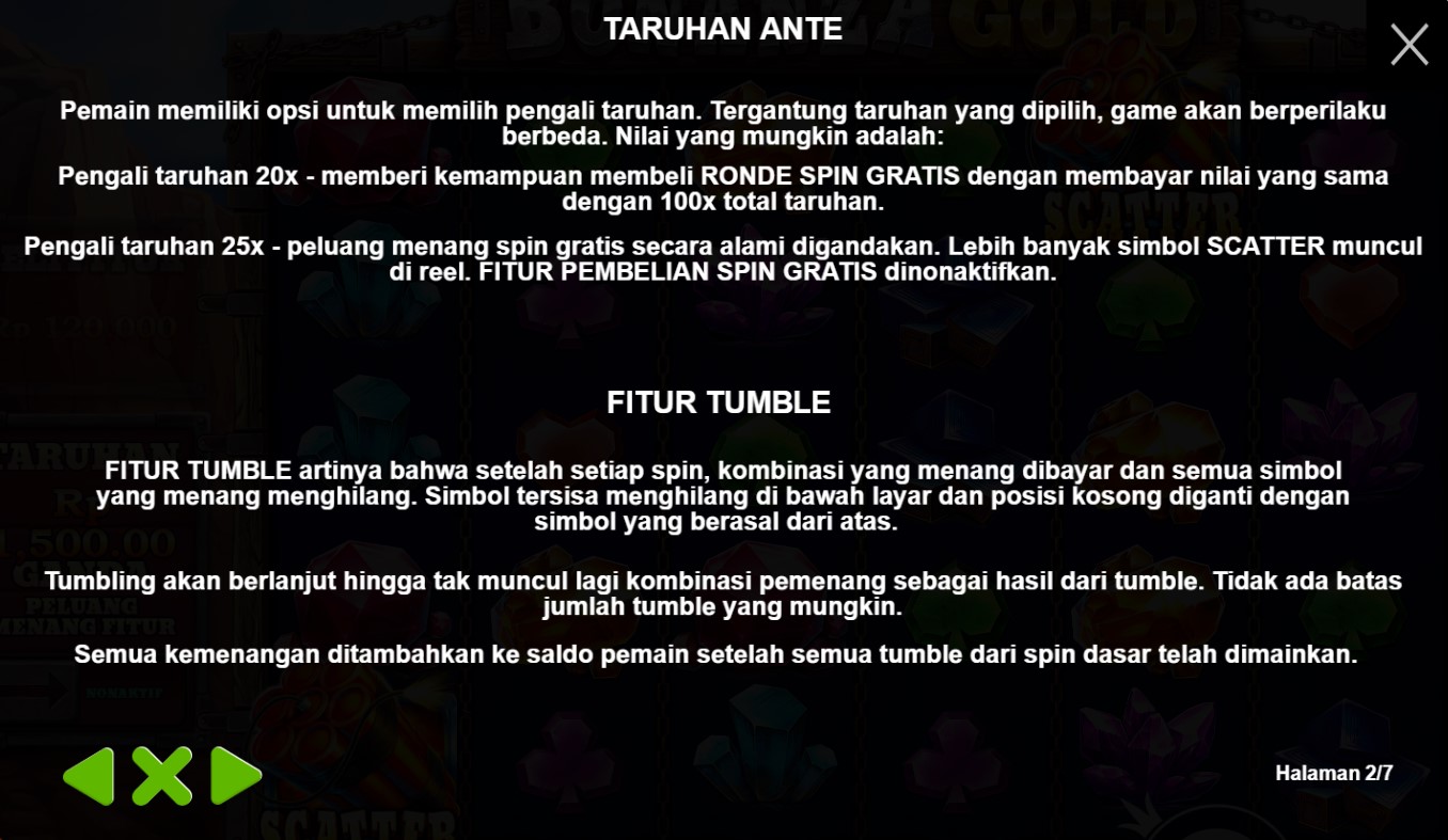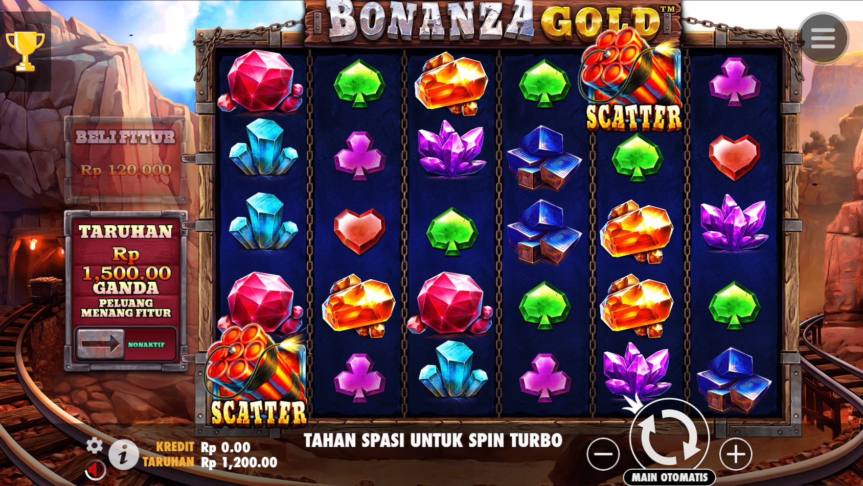 Bonanza Gold adalah slot online yang memikat pemain dengan tema pertambangan emas yang penuh dengan kekayaan dan kemegahan. Dengan grafis yang mengesankan dan suara-suara yang meriah, pemain akan merasa seolah-olah berada di dalam tambang emas yang sejati. Fitur-fitur bonus yang menggiurkan, seperti putaran gratis dan simbol Wild yang aktif, menambah keseruan dalam setiap putaran. Kombinasi simbol-simbol khas tambang emas, seperti palu, batu berharga, dan kereta tambang, memberikan nuansa yang autentik dan menarik.