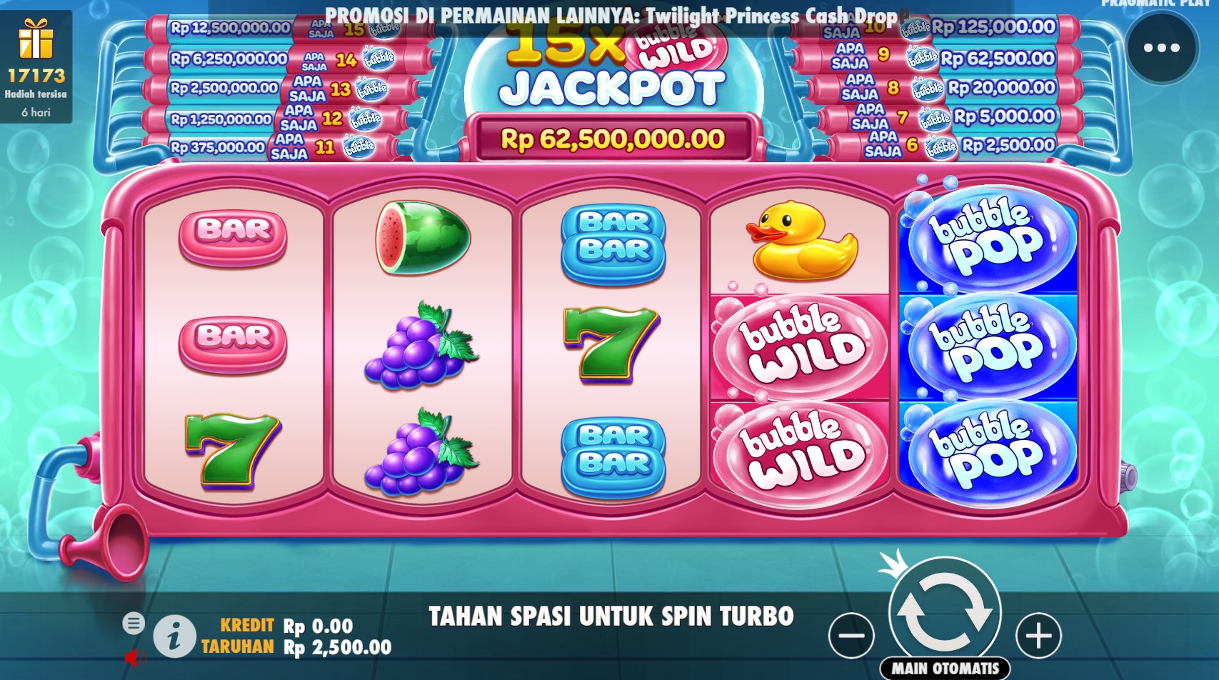 Bubble Pop adalah petualangan yang menggebu dan mengasyikkan dalam slot online terpercaya dari Pragmatic Play. Dalam permainan ini, Anda akan memasuki dunia yang dipenuhi dengan gelembung-gelembung warna-warni yang siap meletus. Bubble Pop mengajak Anda untuk merasakan sensasi yang menyenangkan dengan setiap putaran gulungan yang berkedip-kedip. Dalam permainan ini, tugas Anda adalah mencocokkan gelembung-gelembung yang sama untuk menghasilkan kombinasi yang menguntungkan. Namun, apa yang membuat Bubble Pop benar-benar istimewa adalah fitur-fitur bonus yang unik. Dari putaran gratis yang menyegarkan dengan pengganda kemenangan hingga bonus mini-game yang menghibur, setiap momen di Bubble Pop adalah kesempatan emas untuk meraih hadiah yang menggebu-gebu. Dengan tampilan yang ceria dan antarmuka yang mudah digunakan, Anda akan merasakan kegembiraan bermain yang tak terlupakan. Siapkan diri Anda untuk meleleh dalam kesenangan bermain Bubble Pop yang unik ini!