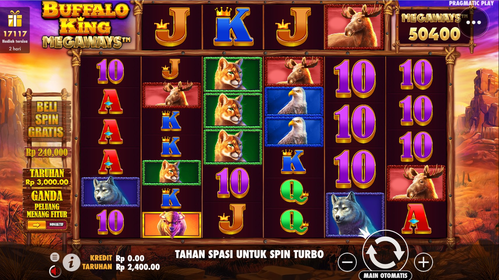 Buffalo King Megaways adalah permainan slot online yang menggembirakan dan penuh keajaiban dari Pragmatic Play. Dalam permainan ini, Anda akan memasuki dunia yang dipenuhi dengan keindahan alam liar dan kekuatan binatang yang perkasa. Buffalo King Megaways menghadirkan konsep Megaways yang unik, di mana setiap putaran memberikan ribuan cara untuk menang yang menggiurkan. Dalam setiap gulungan yang berputar, Anda akan menjumpai simbol-simbol yang melambangkan kekuatan dan keanggunan bison, dengan lanskap yang menakjubkan sebagai latar belakang. Apa yang membuat Buffalo King Megaways benar-benar istimewa adalah fitur-fitur bonus yang menarik. Dari putaran gratis dengan pengganda kemenangan yang meningkat hingga fitur jatuh kembali yang memberikan peluang beruntun, setiap momen di Buffalo King Megaways adalah kesempatan emas untuk meraih keuntungan yang luar biasa. Dengan tampilan yang memukau dan antarmuka yang mudah digunakan, Anda akan merasakan sensasi bermain yang tak terlupakan. Siapkan diri Anda untuk menjadi raja padang rumput dalam Buffalo King Megaways yang menarik ini!