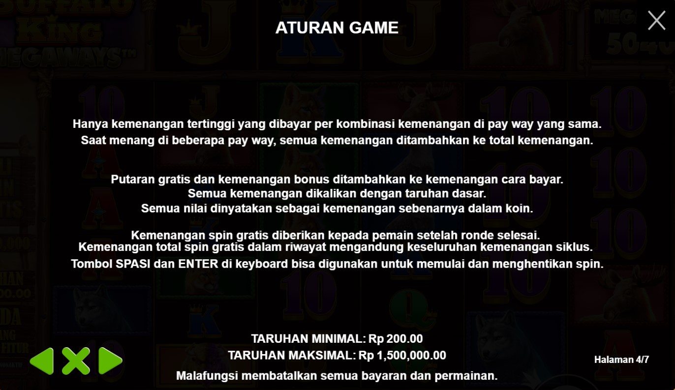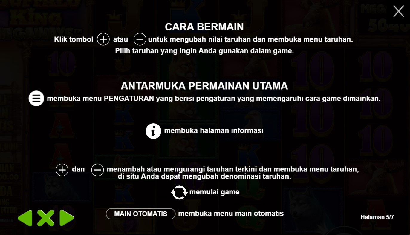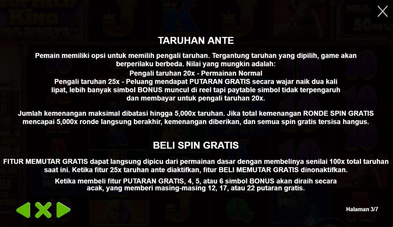 paytable yang mengungkap keajaiban dan potensi kemenangan dalam slot online terpercaya, Buffalo King Megaways! Di dalam paytable ini, Anda akan menemukan simbol-simbol yang melambangkan kekuatan dan keindahan binatang bison, dengan Buffalo King Megaways sebagai pusat perhatian. Setiap simbol yang muncul di gulungan akan membawa Anda pada petualangan yang memukau, dengan ribuan cara untuk menang dan nilai taruhan yang menarik. Jelajahi setiap rincian paytable ini dan temukan hadiah yang tersembunyi di setiap putaran. Bersiaplah untuk merasakan sensasi kemenangan yang menggetarkan dalam permainan Buffalo King Megaways yang unik ini. Ayo, siapkan diri Anda untuk menjadi raja padang rumput dan meraih keuntungan yang melimpah dalam slot online terpercaya, Buffalo King Megaways!