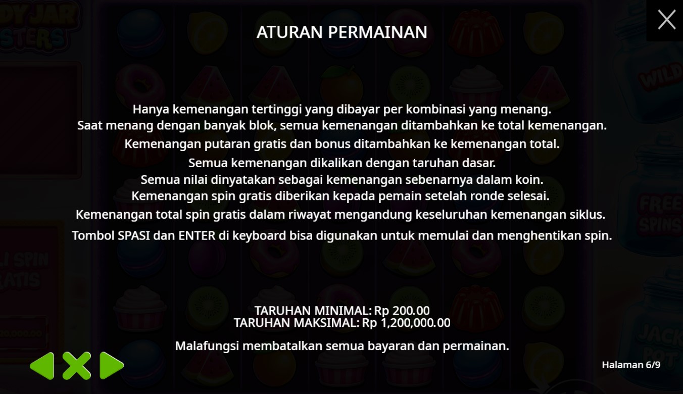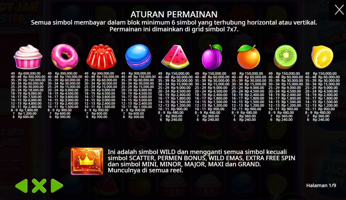 Paytable Slot Online Terpercaya Candy Jar Cluster