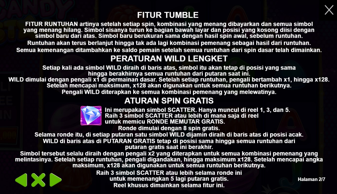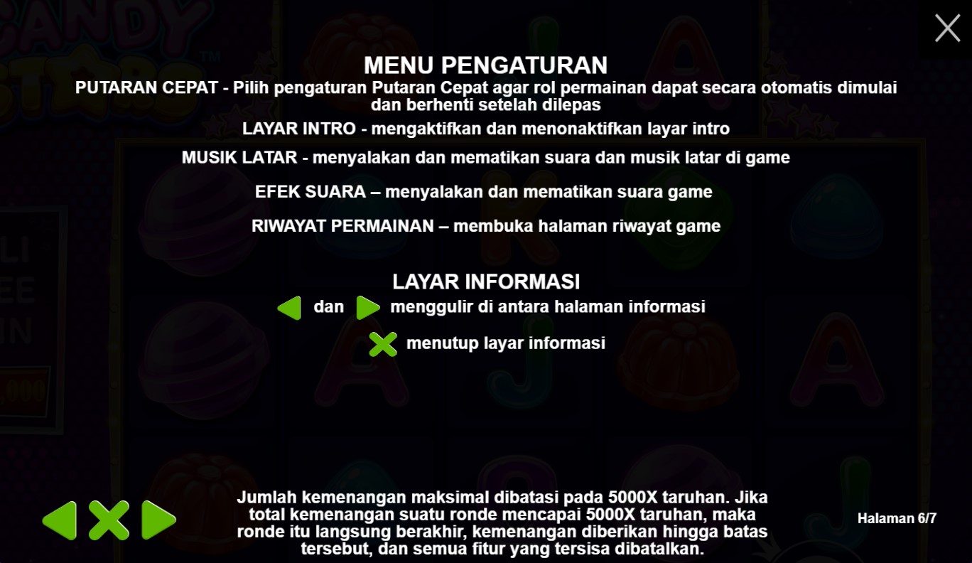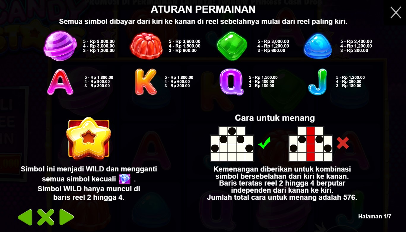 Paytable Candy Stars adalah sebuah panduan yang membawa Anda ke dalam dunia manis dan menggugah selera permainan slot online terpercaya ini. Dalam paytable ini, Anda akan menemukan berbagai simbol permen yang memikat hati dengan nilai kemenangan yang beragam. Setiap gulungan penuh dengan kejutan dan potensi untuk meraih hadiah manis yang akan membuat Anda tergoda untuk terus bermain. Dalam paytable Candy Stars, Anda akan menemukan simbol-simbol permen yang berbeda dengan nilai kemenangan yang beragam. Mulai dari permen berbentuk jeli yang memberikan hadiah kecil namun sering, hingga permen berbentuk lollipop berwarna-warni yang memberikan kemenangan besar yang menggoda. Setiap simbol memiliki nilai kemenangan yang tertera dengan jelas dalam paytable, sehingga Anda dapat melihat potensi pembayaran yang bisa Anda dapatkan. Selain itu, Candy Stars juga menawarkan simbol-simbol khusus seperti simbol Wild yang dapat menggantikan simbol lainnya, serta simbol Scatter yang bisa memicu fitur-fitur bonus menarik.