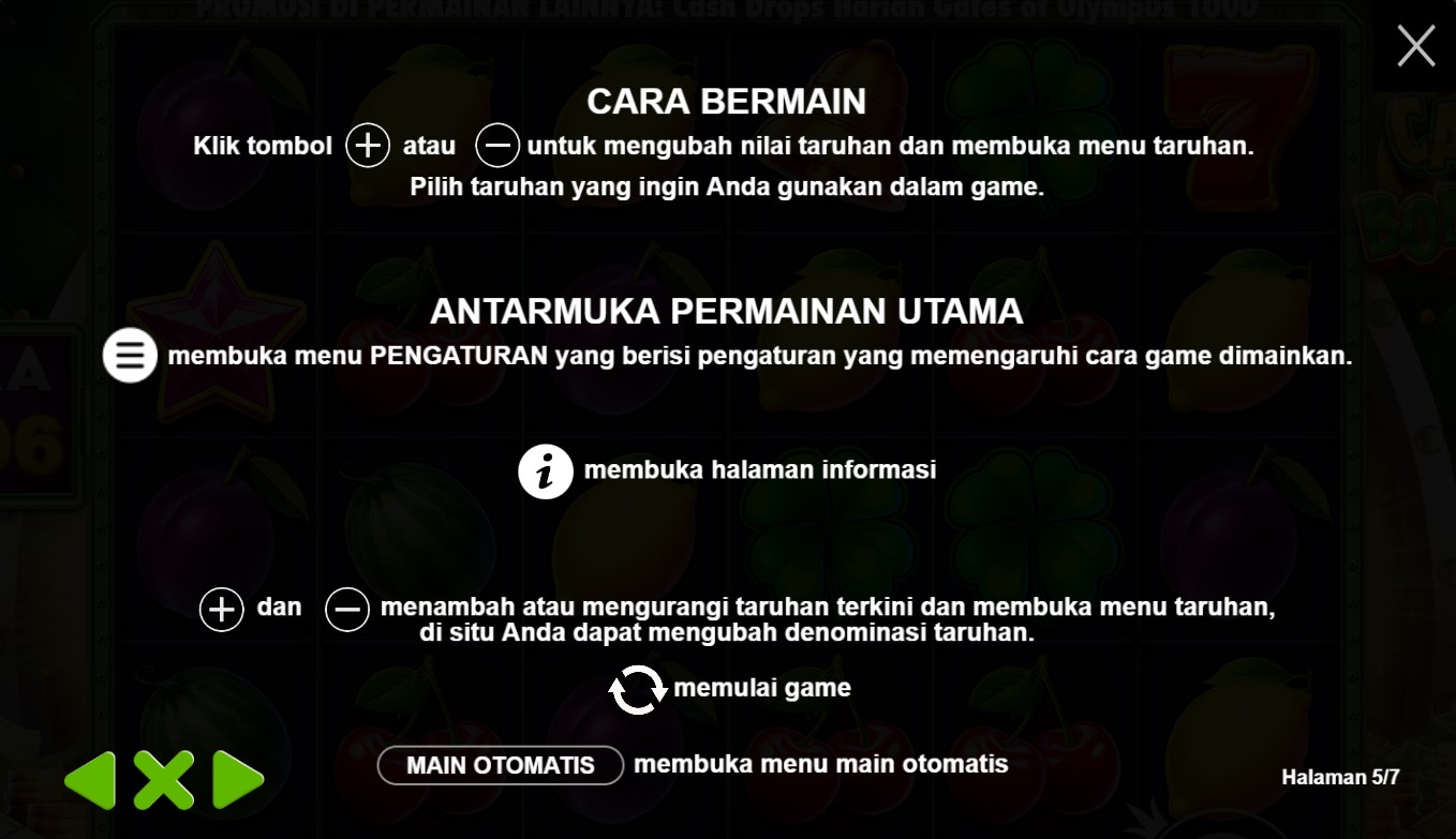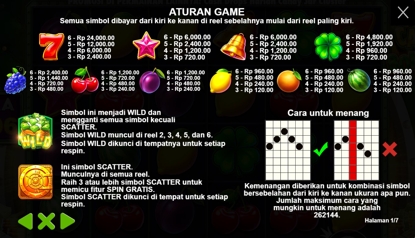 Paytable Cash Bonanza adalah panduan yang memperlihatkan jalan menuju kekayaan dan kegembiraan dalam permainan slot online terpercaya ini. Dalam paytable ini, Anda akan menemukan kumpulan simbol-simbol uang tunai yang menggoda dan nilai kemenangan yang menarik. Setiap gulungan penuh dengan potensi untuk meraih hadiah-hadiah besar yang akan membuat Anda terpesona dan terus tergoda untuk bermain. Dalam paytable Cash Bonanza, Anda akan menemukan simbol-simbol uang tunai yang berbeda dengan nilai kemenangan yang beragam. Mulai dari kantong uang tunai yang memberikan hadiah kecil namun sering, hingga tumpukan uang tunai yang memberikan kemenangan besar yang memukau. Masing-masing simbol memiliki nilai kemenangan yang jelas tertera dalam paytable, sehingga Anda dapat melihat potensi pembayaran yang bisa Anda dapatkan. Selain itu, Cash Bonanza juga menawarkan simbol-simbol khusus seperti simbol Wild yang dapat menggantikan simbol lainnya, serta simbol Scatter yang bisa memicu fitur-fitur bonus menarik.