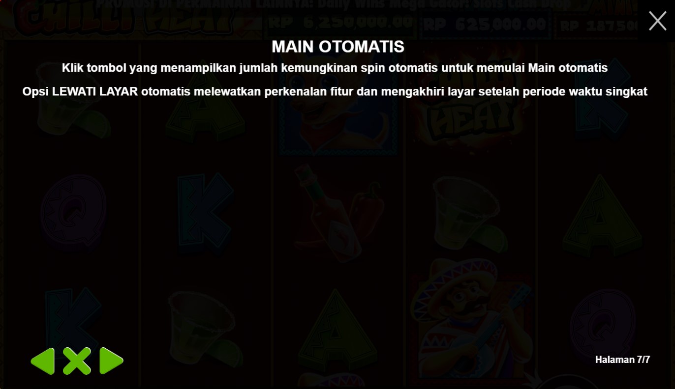 Keunggulan Chilli Heat adalah pengalaman bermain slot online yang menggugah selera dengan perpaduan yang sempurna antara tema pedas yang menggoda dan fitur-fitur permainan yang membara. Dikembangkan oleh Pragmatic Play, permainan ini menawarkan kesenangan yang panas dan peluang kemenangan yang memikat. Dalam permainan ini, Anda akan dihadapkan dengan suasana jalanan Meksiko yang bersemangat dengan latar belakang yang penuh warna dan animasi yang memikat mata. Setiap gulungan dipenuhi dengan simbol-simbol pedas, seperti cabai merah yang membara, botol saus pedas, dan mariachi yang memainkan musik yang menggoda. Tampilan visual yang cerah dan suara yang meriah menciptakan atmosfer yang menyala-nyala dan membangkitkan semangat Anda untuk memulai petualangan panas di Chilli Heat. Selain tema yang menggugah selera, Chilli Heat juga menawarkan fitur-fitur permainan yang memicu kegembiraan. Fitur utama dalam permainan ini adalah fitur putaran bebas, di mana Anda memiliki kesempatan untuk memenangkan putaran gratis dengan hadiah-hadiah panas yang menggiurkan. Selama putaran bebas, simbol uang tunai yang muncul di gulungan dapat memberikan kemenangan besar.