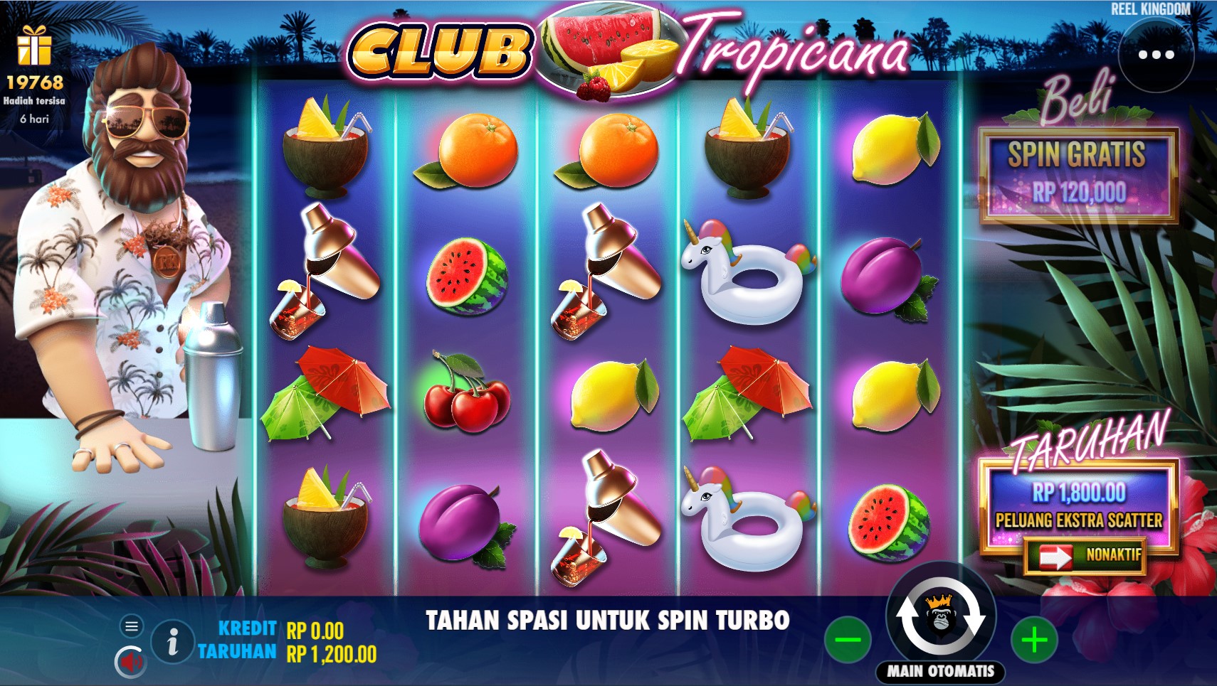 Club Tropicana adalah permainan slot online terpercaya yang akan membawa Anda ke dalam dunia yang menyegarkan dan bersemangat dari liburan di surga tropis. Dikembangkan oleh Pragmatic Play, permainan ini menghadirkan kombinasi yang sempurna antara keindahan pantai, musik yang menggembirakan, dan simbol-simbol yang bersemangat dalam petualangan slot yang penuh dengan kesenangan dan peluang kemenangan yang menarik. Club Tropicana mengajak Anda untuk melarikan diri dari rutinitas sehari-hari dan merasakan pesona liburan di surga tropis. Dalam permainan ini, Anda akan dihadapkan pada pemandangan pantai yang cantik dengan pasir putih, air biru yang jernih, dan pohon-pohon palem yang lebat. Desain grafis yang menakjubkan dan detail yang kaya menjadikan setiap putaran sebagai perjalanan visual yang memukau. Simbol-simbol yang terkait dengan tema tropis, seperti buah-buahan segar, minuman berwarna-warni, dan pakaian renang, menghiasi gulungan slot, menciptakan suasana yang ceria dan menggugah semangat liburan.