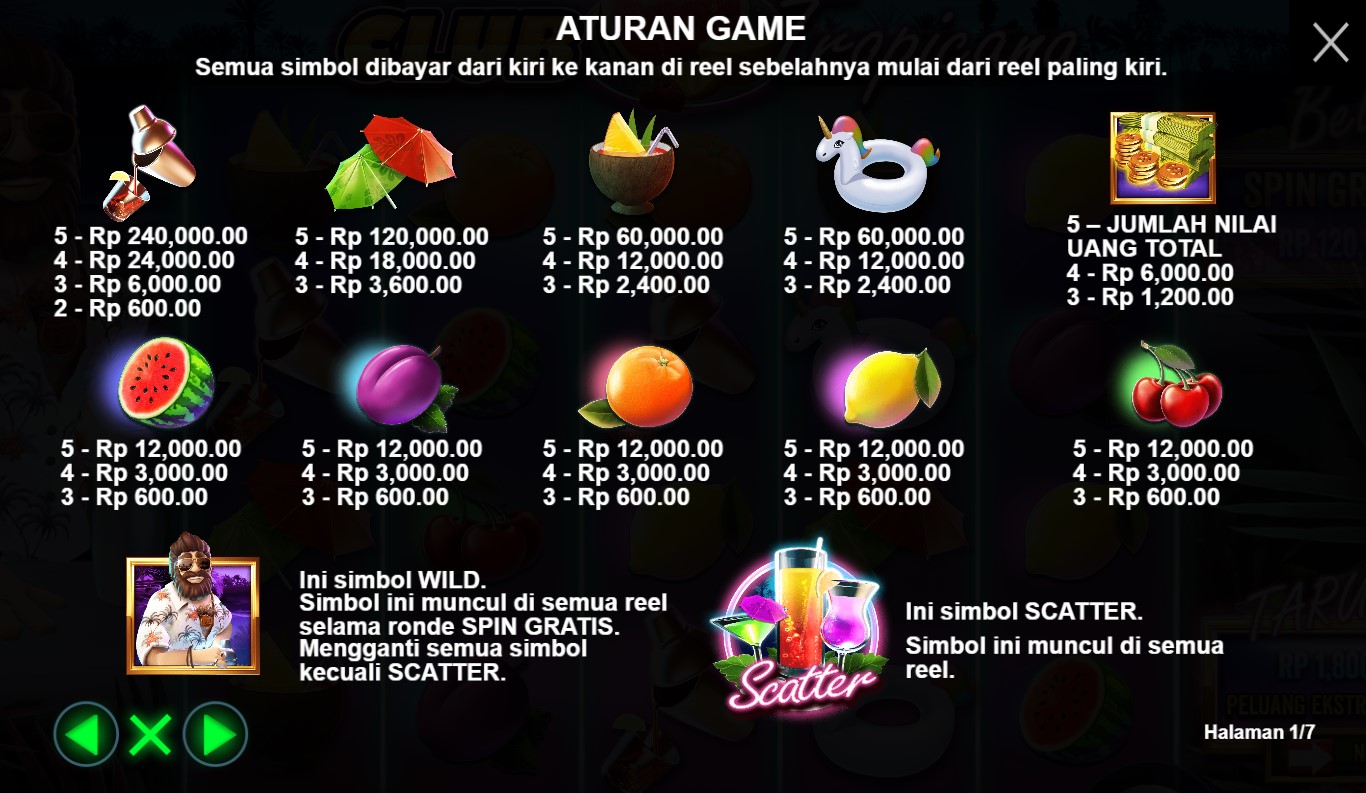 Paytable Slot Online Terpercaya Club Tropicana