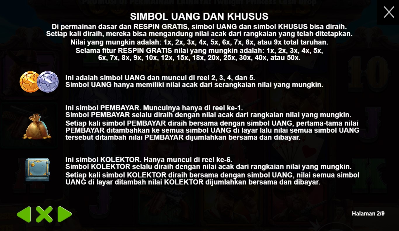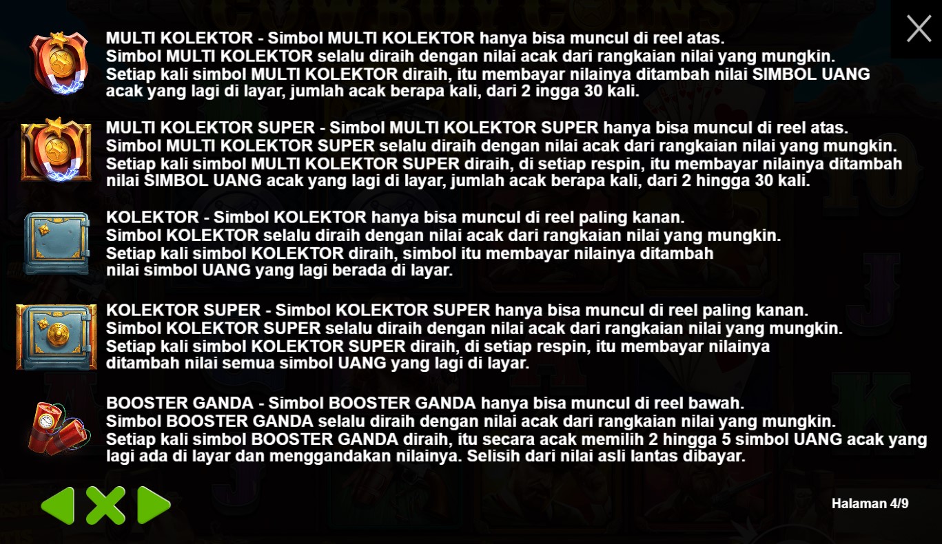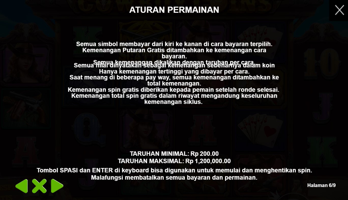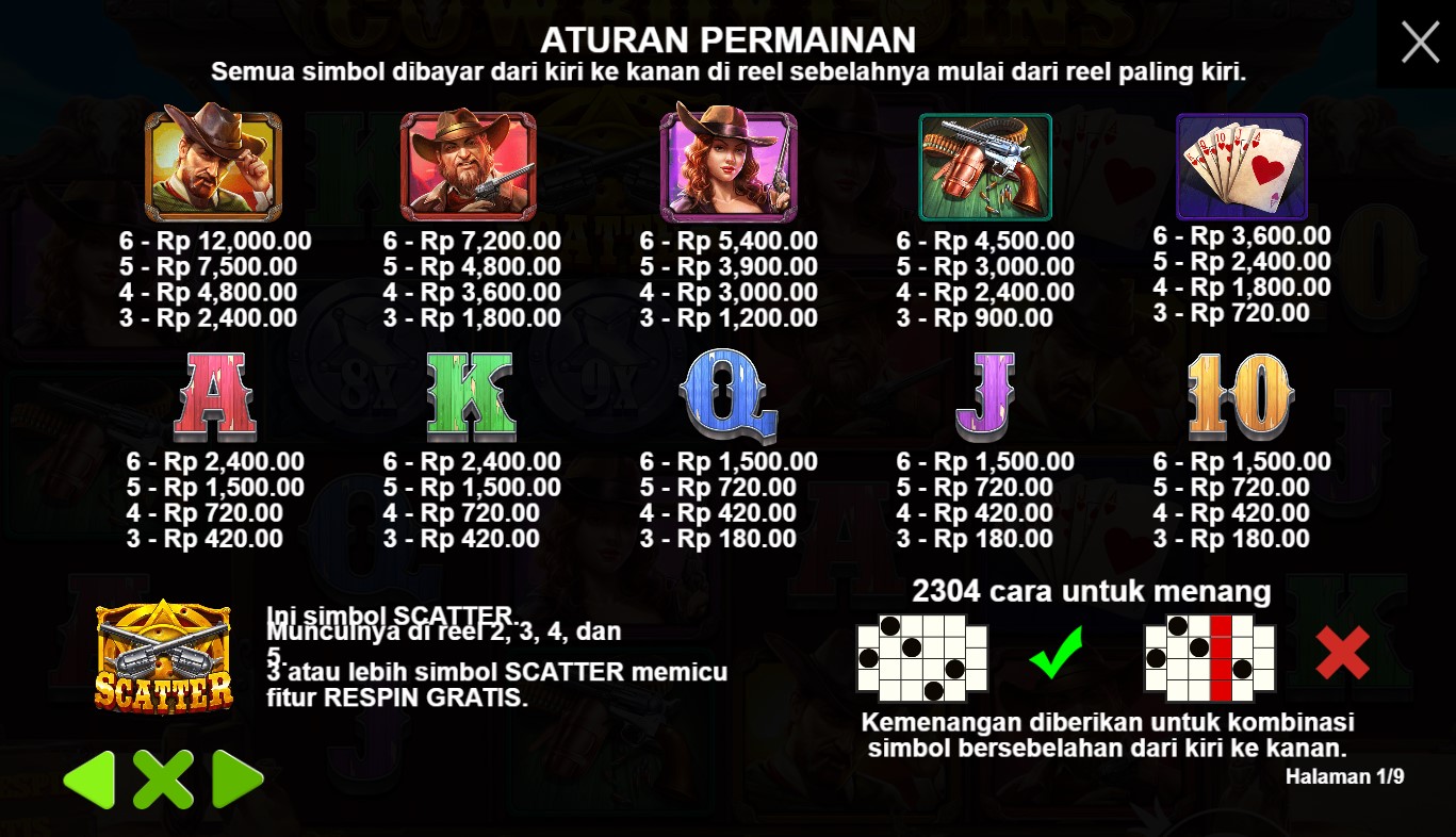 Paytable Cowboy Coins adalah petunjuk yang menyingkap rahasia kekayaan dan potensi kemenangan yang menarik dalam permainan slot online terpercaya ini. Dalam paytable ini, Anda akan menemukan informasi yang mendetail tentang simbol-simbol yang menghiasi gulungan slot Cowboy Coins dan nilai kemenangan yang terkait dengan masing-masing simbol tersebut. Paytable Cowboy Coins memberikan gambaran lengkap tentang kombinasi-kombinasi yang menguntungkan dan peluang pembayaran yang menarik, memungkinkan Anda untuk merencanakan strategi permainan yang cerdas dan meraih kemenangan yang mengesankan. Dalam Paytable Cowboy Coins, Anda akan menemukan simbol-simbol yang membawa Anda ke dunia koboi yang legendaris, seperti topi koboi, revolver, kuda, dan koin-koin berharga. Setiap simbol memiliki nilai kemenangan yang tertera dalam paytable, memungkinkan Anda untuk melihat secara langsung potensi keuntungan yang bisa Anda raih dari kombinasi simbol yang berbeda. Selain itu, permainan ini juga menawarkan fitur-fitur khusus yang meningkatkan peluang kemenangan, seperti simbol koboi liar yang membantu Anda membentuk kombinasi pemenang dan fitur putaran bebas dengan pengganda kemenangan yang menggiurkan. Dengan memahami paytable Cowboy Coins dengan baik, Anda dapat mengoptimalkan peluang Anda untuk meraih kemenangan besar dan merasakan sensasi luar biasa dari permainan ini.