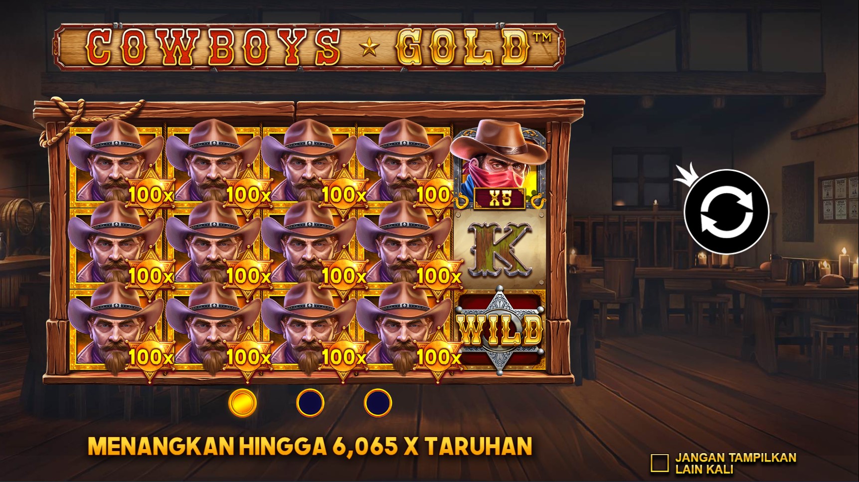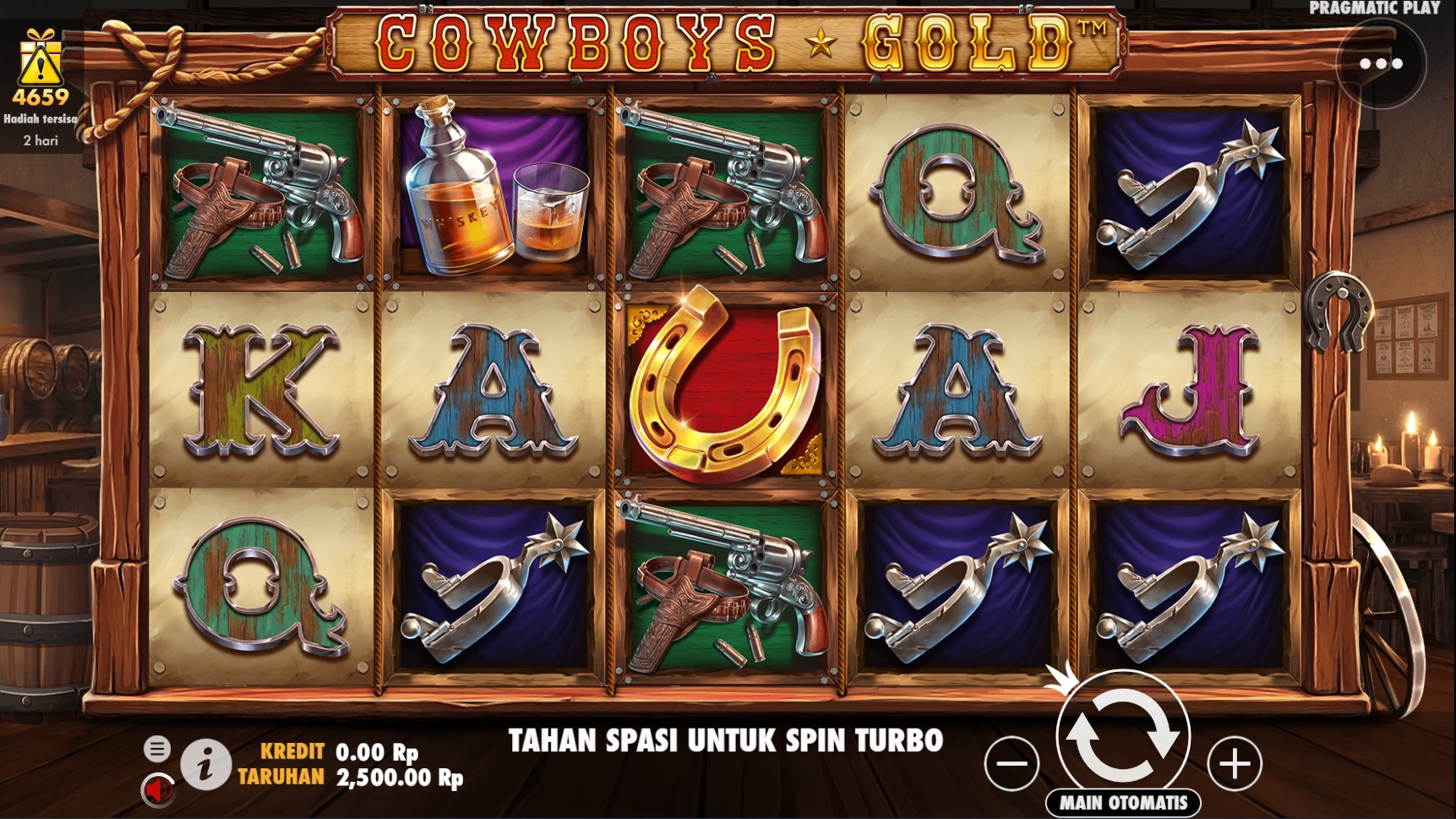 Cowboys Gold adalah permainan slot online terpercaya yang akan membawa Anda kembali ke era emas koboi yang legendaris. Dikembangkan oleh Pragmatic Play, permainan ini menggabungkan kegembiraan tema koboi dengan kesempurnaan teknologi permainan online untuk menciptakan pengalaman bermain yang tak terlupakan. Cowboys Gold adalah pintu gerbang menuju dunia koboi yang dipenuhi dengan petualangan dan kekayaan. Dalam permainan ini, Anda akan menemukan gulungan slot yang dihiasi dengan simbol-simbol yang mencerminkan kehidupan koboi yang kasar, seperti topi koboi, tembakan revolver, kuda perkasa, dan, tentu saja, emas berkilauan. Setiap putaran gulungan akan membawa Anda ke dalam atmosfer yang memikat dari tanah koboi yang ganas, membangkitkan semangat petualangan dan ketangguhan dalam diri Anda.
