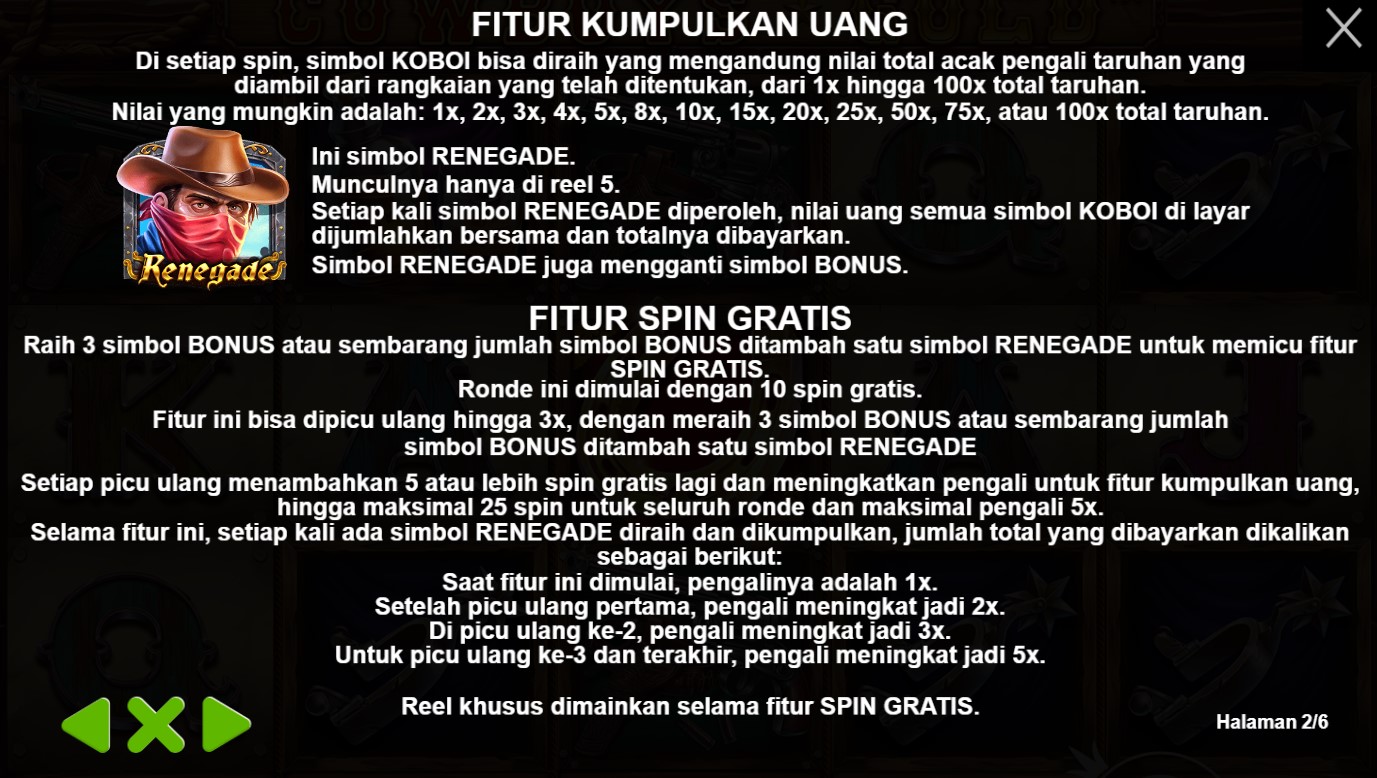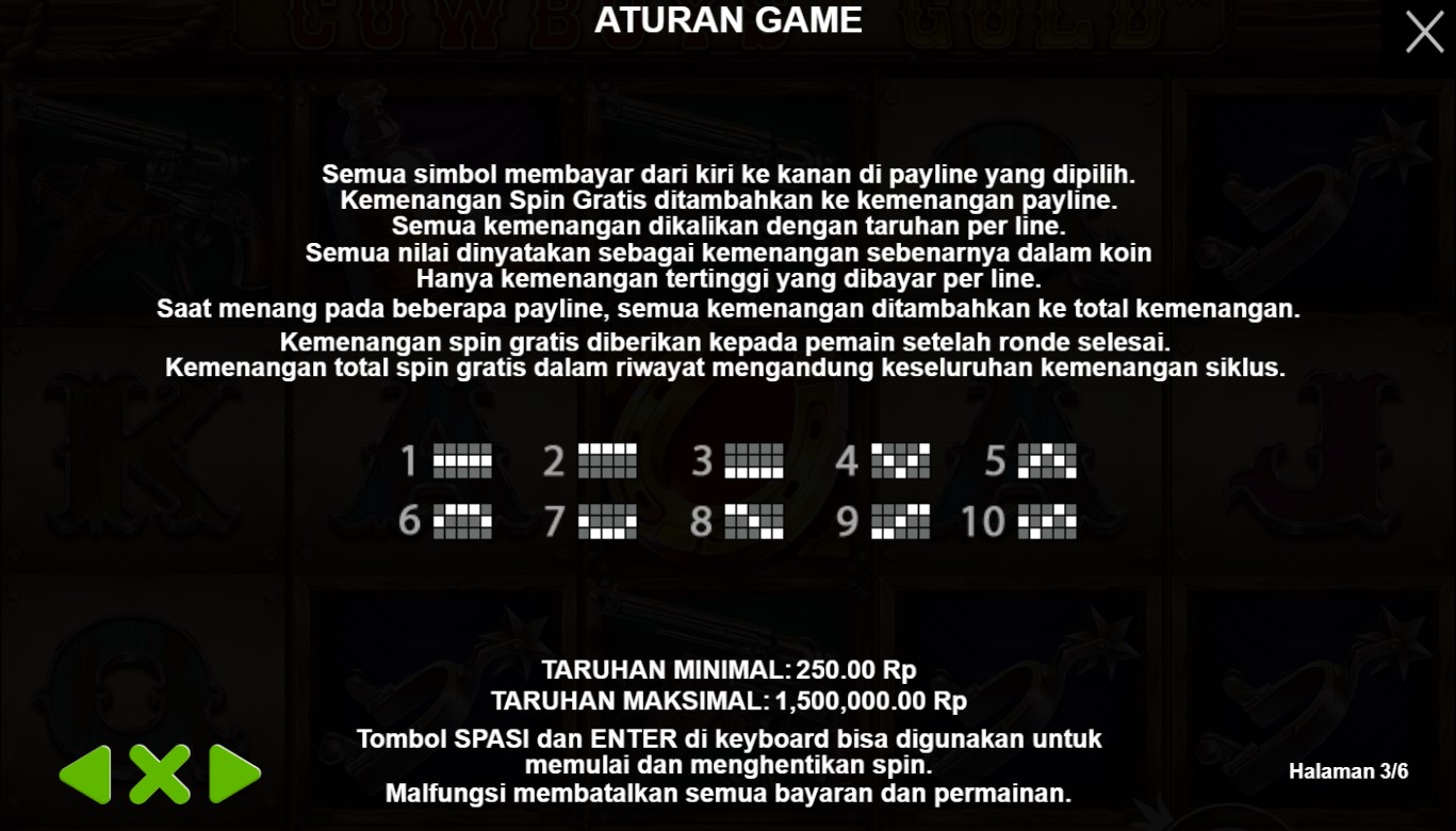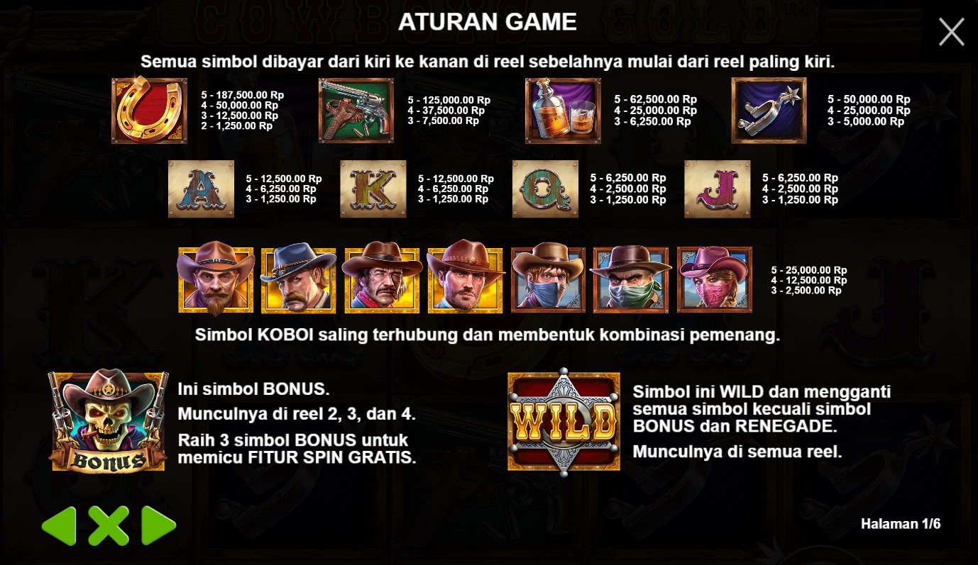 Paytable Cowboys Gold adalah panduan lengkap yang akan membawa Anda ke dalam dunia koboi yang memikat dan membantu Anda memahami potensi kemenangan yang menakjubkan dalam permainan slot online terpercaya ini. Dalam paytable ini, Anda akan menemukan informasi yang detail tentang simbol-simbol yang menghiasi gulungan slot Cowboys Gold dan nilai kemenangan yang terkait dengan masing-masing simbol tersebut. Paytable Cowboys Gold memberikan gambaran yang jelas tentang kombinasi-kombinasi yang menguntungkan dan peluang pembayaran yang menarik, memungkinkan Anda untuk merencanakan strategi permainan yang cerdas dan mengoptimalkan potensi kemenangan Anda.