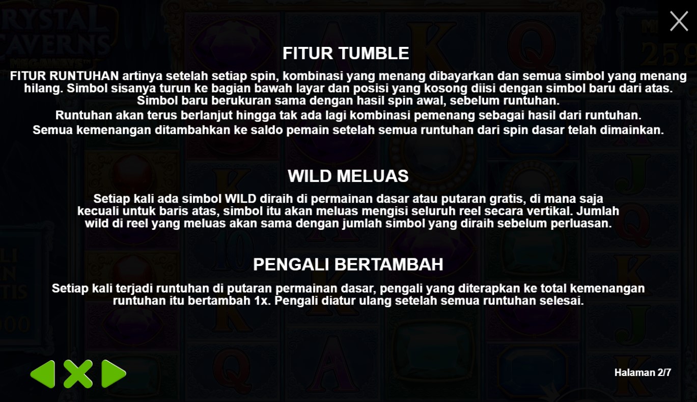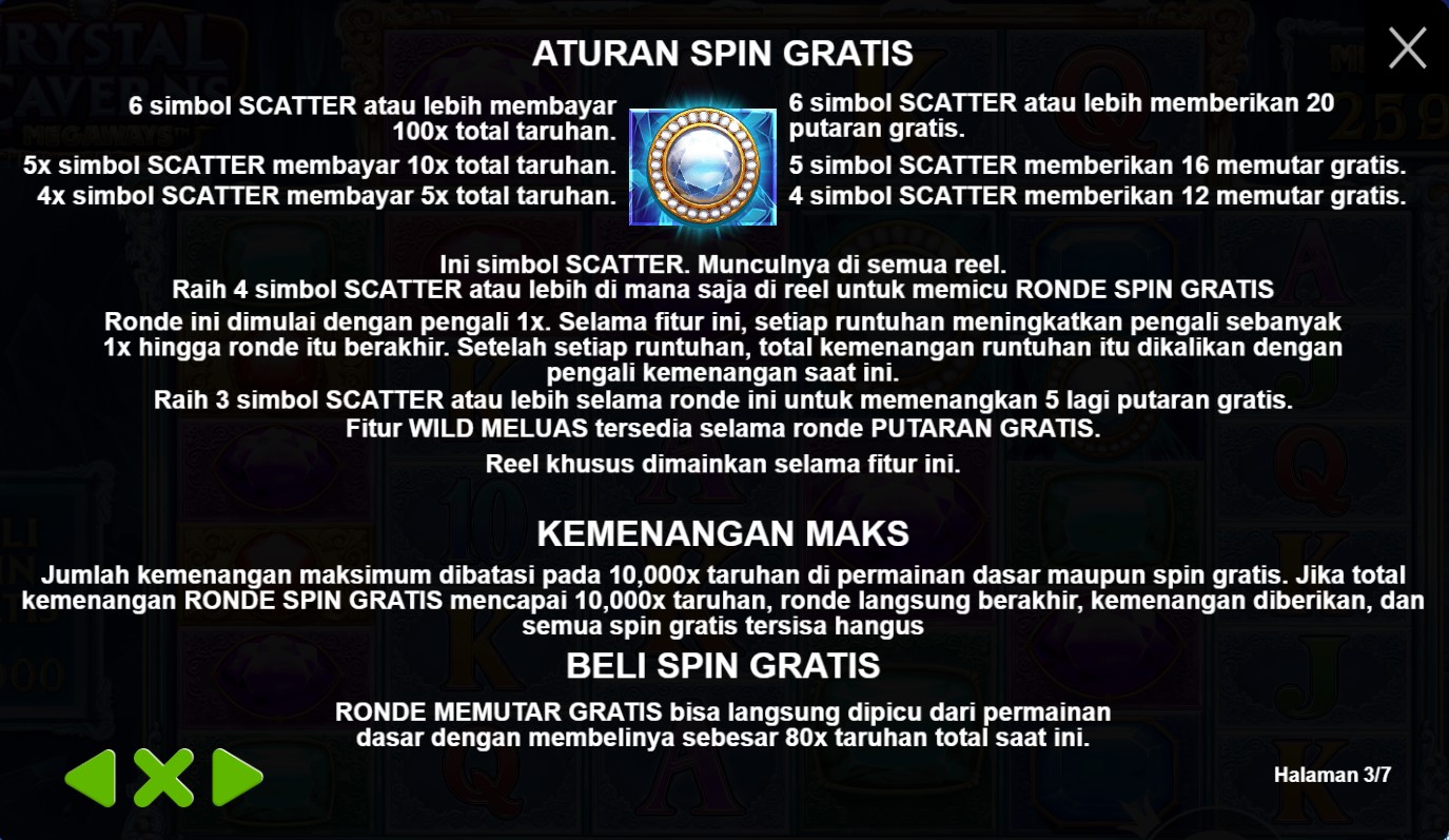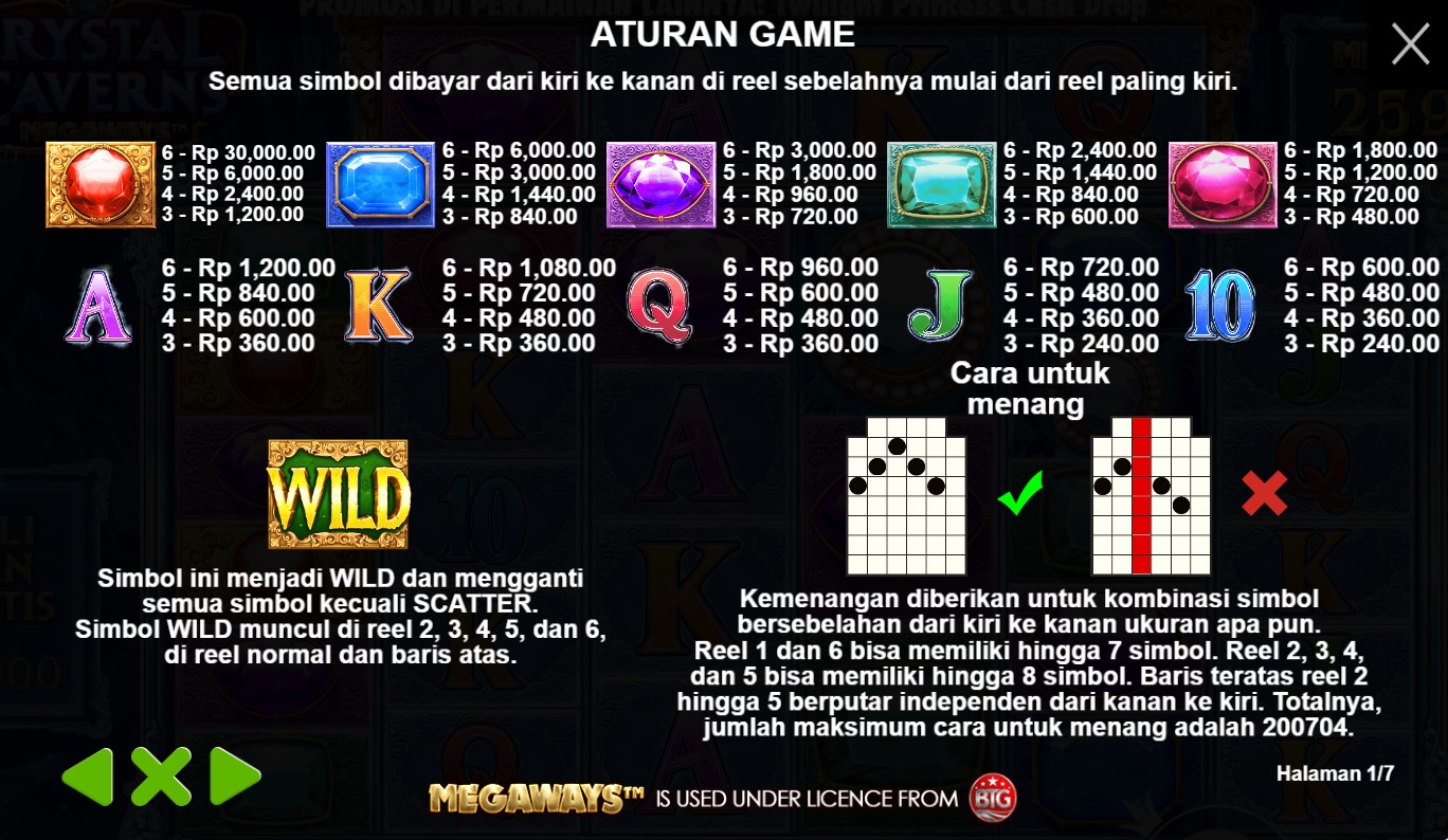 Paytable Crystal Caverns Megaways adalah kunci untuk memahami segala keindahan dan keajaiban yang tersimpan di dalam gua ajaib ini. Dalam paytable ini, Anda akan menemukan daftar lengkap simbol-simbol yang menghiasi gulungan slot, mulai dari batuan berkilauan hingga kristal yang memancarkan keindahan yang memukau. Masing-masing simbol memiliki nilai kemenangan yang tercantum dengan jelas dalam paytable, memungkinkan Anda untuk melihat potensi keuntungan yang dapat Anda raih dari kombinasi simbol yang berbeda. Paytable Crystal Caverns Megaways juga memberikan penjelasan mendalam tentang fitur-fitur istimewa dalam permainan. Anda akan menemukan informasi tentang fitur Megaways yang revolusioner, yang menghadirkan ribuan cara berbeda untuk meraih kemenangan pada setiap putaran gulungan. Selain itu, paytable ini mengungkapkan fitur-fitur tambahan seperti Cascading Reels, di mana simbol-simbol yang menang akan digantikan oleh simbol-simbol baru yang membuka peluang kemenangan berturut-turut. Terdapat juga fitur Free Spins yang memberikan kesempatan untuk meraih putaran gratis dengan gulungan penuh dengan simbol bernilai tinggi, meningkatkan peluang Anda untuk meraih kemenangan yang menggiurkan.