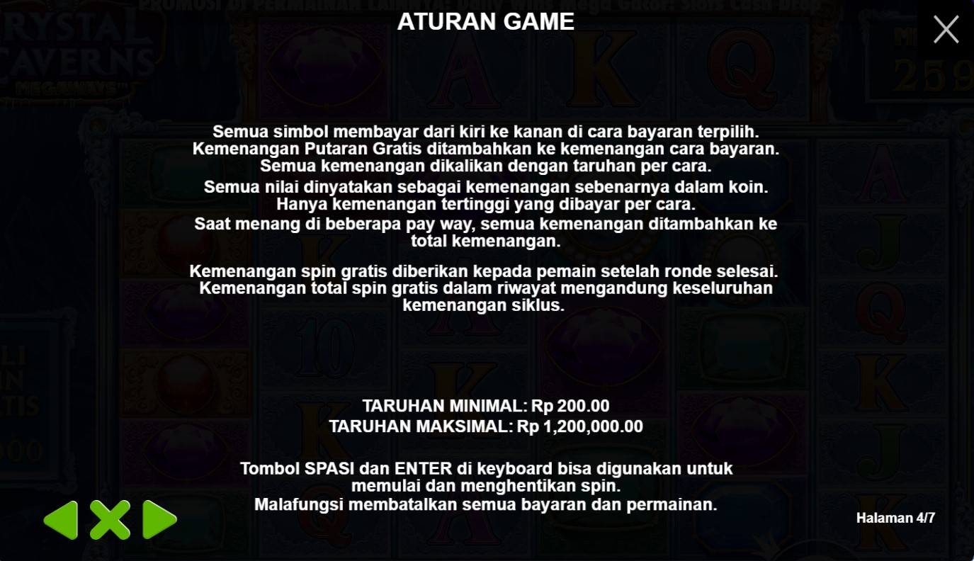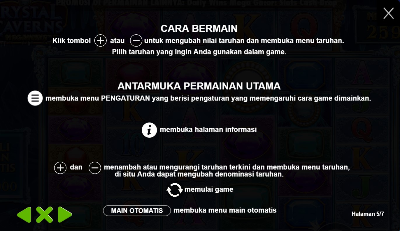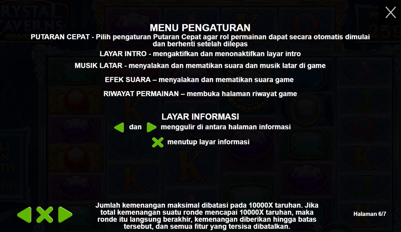 Paytable Crystal Caverns Megaways adalah kunci untuk memahami segala keindahan dan keajaiban yang tersimpan di dalam gua ajaib ini. Dalam paytable ini, Anda akan menemukan daftar lengkap simbol-simbol yang menghiasi gulungan slot, mulai dari batuan berkilauan hingga kristal yang memancarkan keindahan yang memukau. Masing-masing simbol memiliki nilai kemenangan yang tercantum dengan jelas dalam paytable, memungkinkan Anda untuk melihat potensi keuntungan yang dapat Anda raih dari kombinasi simbol yang berbeda. Paytable Crystal Caverns Megaways juga memberikan penjelasan mendalam tentang fitur-fitur istimewa dalam permainan. Anda akan menemukan informasi tentang fitur Megaways yang revolusioner, yang menghadirkan ribuan cara berbeda untuk meraih kemenangan pada setiap putaran gulungan. Selain itu, paytable ini mengungkapkan fitur-fitur tambahan seperti Cascading Reels, di mana simbol-simbol yang menang akan digantikan oleh simbol-simbol baru yang membuka peluang kemenangan berturut-turut. Terdapat juga fitur Free Spins yang memberikan kesempatan untuk meraih putaran gratis dengan gulungan penuh dengan simbol bernilai tinggi, meningkatkan peluang Anda untuk meraih kemenangan yang menggiurkan.