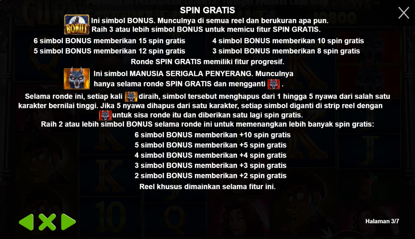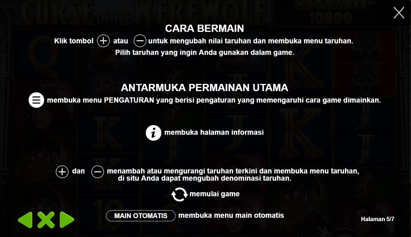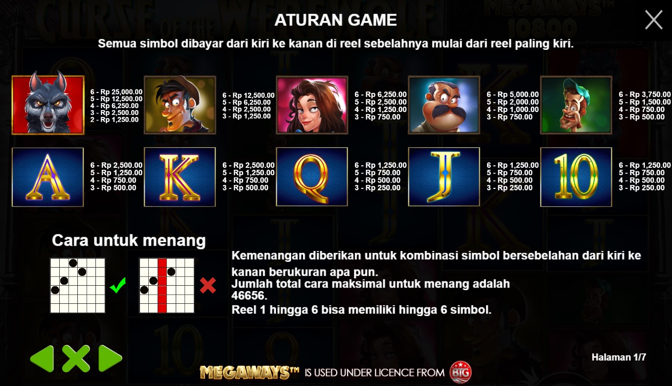 Paytable Curse Of The Werewolf Megaways adalah kunci untuk memahami kegelapan dan ketegangan yang melingkupi permainan ini. Dalam paytable ini, Anda akan menemukan daftar lengkap simbol-simbol yang menghiasi gulungan slot, mulai dari manusia serigala yang menakutkan hingga simbol-simbol yang mencerminkan kegelapan dan misteri. Setiap simbol memiliki nilai kemenangan yang tercantum dengan jelas dalam paytable, memungkinkan Anda untuk melihat potensi keuntungan yang dapat Anda raih dari setiap kombinasi yang terbentuk. Paytable Curse Of The Werewolf Megaways juga memberikan penjelasan mendalam tentang fitur-fitur menarik dalam permainan. Anda akan menemukan informasi tentang fitur Megaways yang menghadirkan ribuan cara berbeda untuk meraih kemenangan pada setiap putaran gulungan. Terdapat juga fitur Transforming Werewolf yang dapat mengubah simbol manusia serigala menjadi simbol liar yang dapat meningkatkan peluang Anda untuk meraih kombinasi kemenangan yang menguntungkan. Selain itu, Anda akan menemukan fitur Bonus Buy yang memungkinkan Anda untuk membeli akses langsung ke putaran bonus yang penuh dengan potensi kemenangan besar.