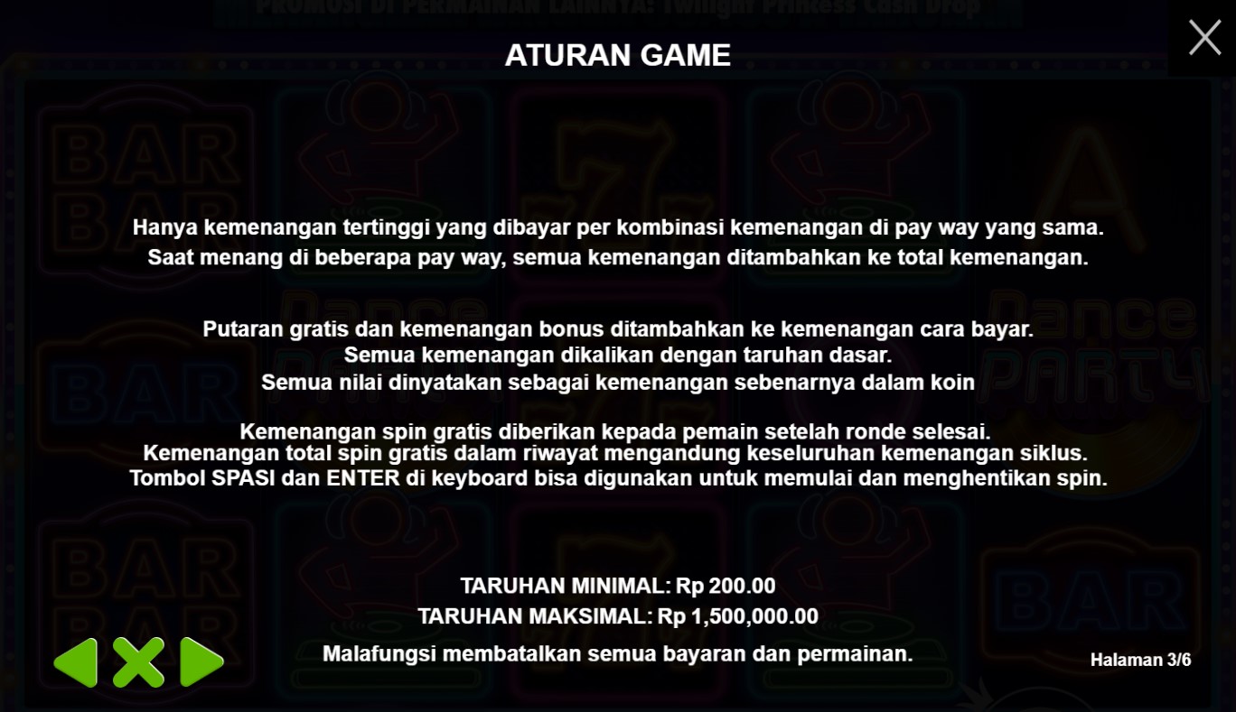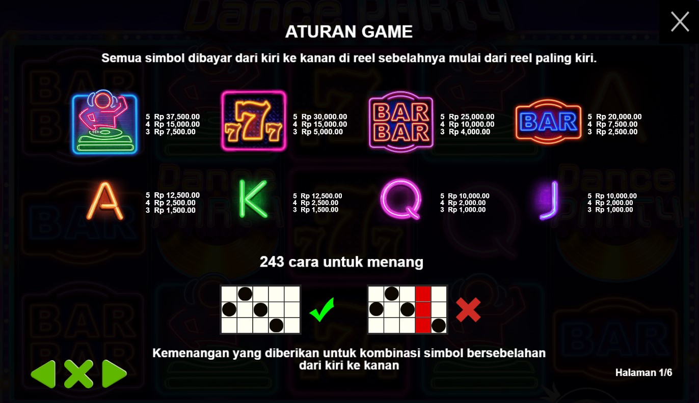 Paytable Slot Online Terpercaya Dance Party