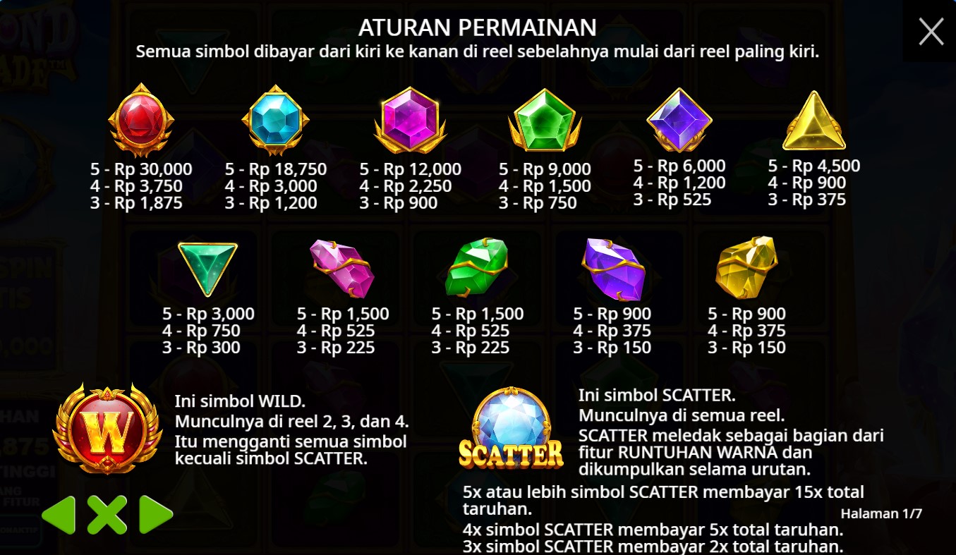Paytable Slot Online Terpercaya Diamond Cascade