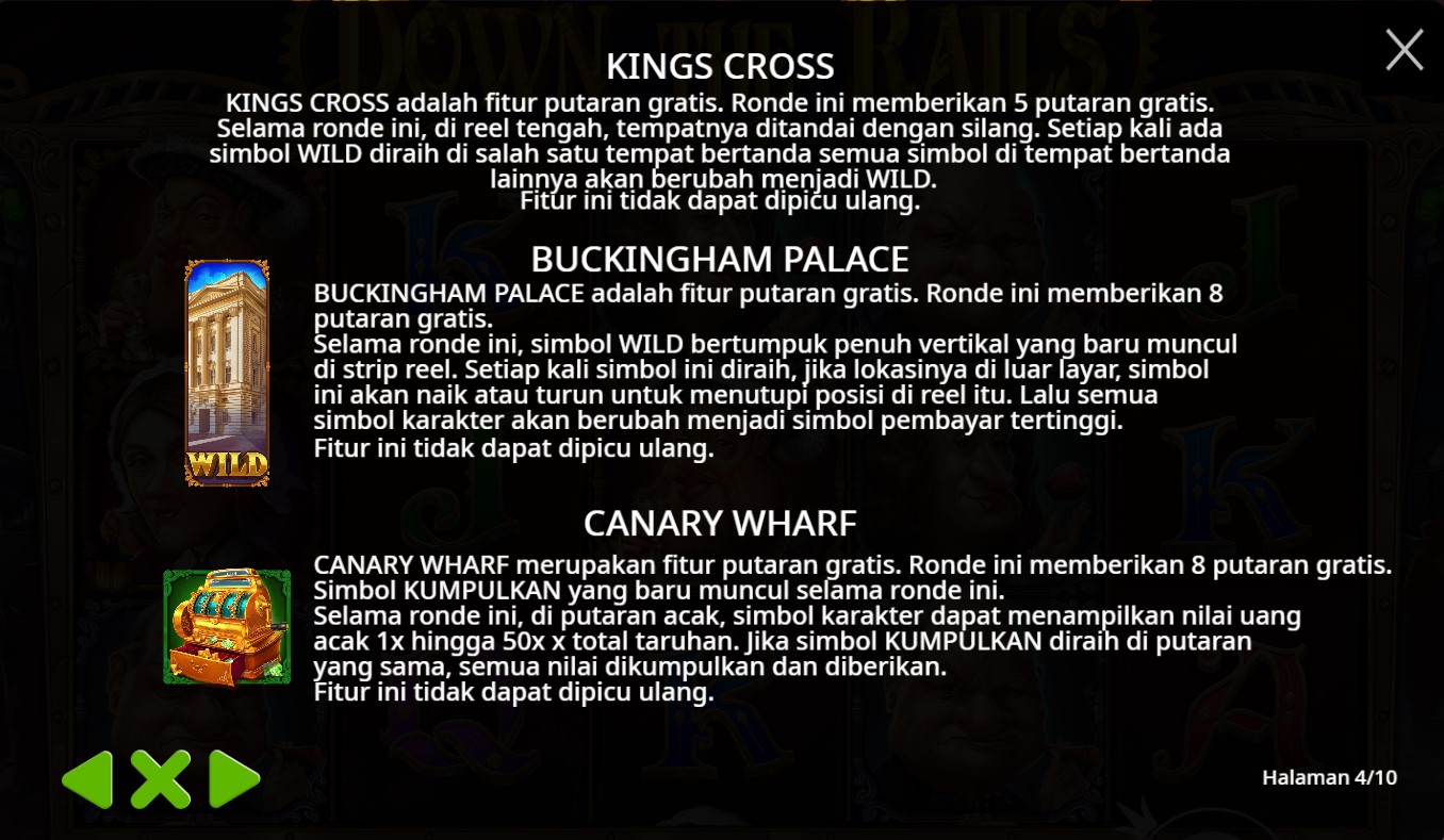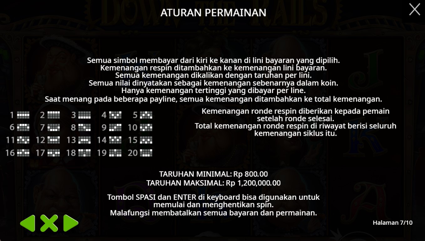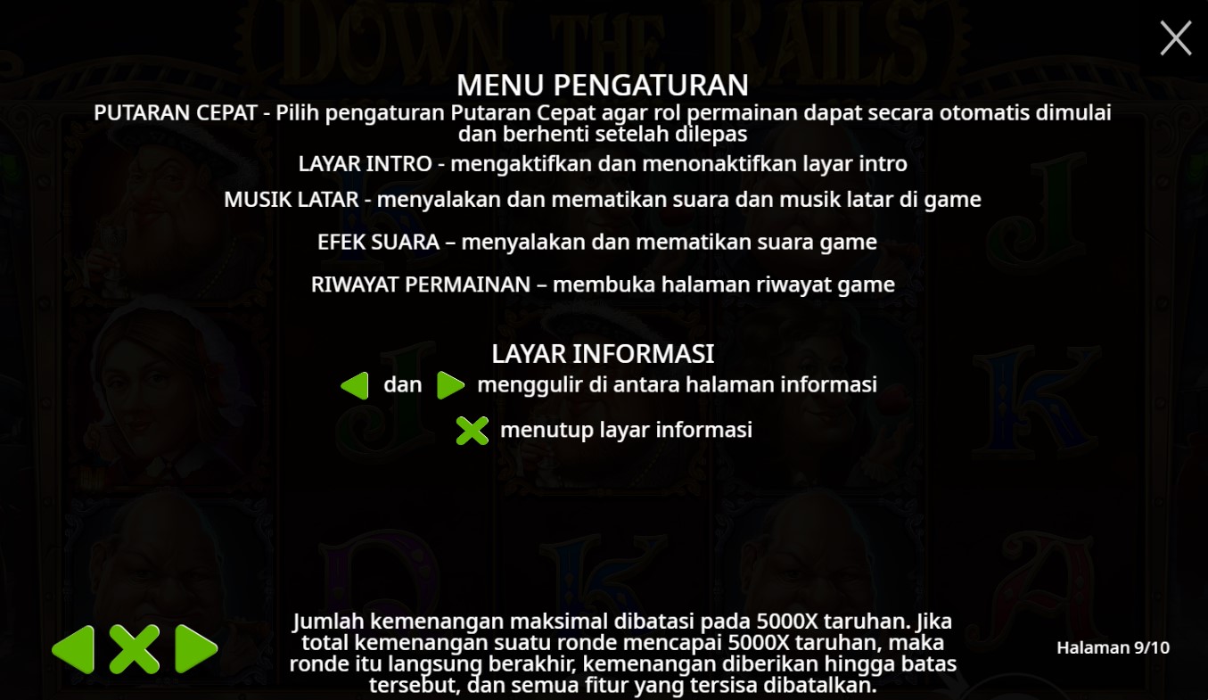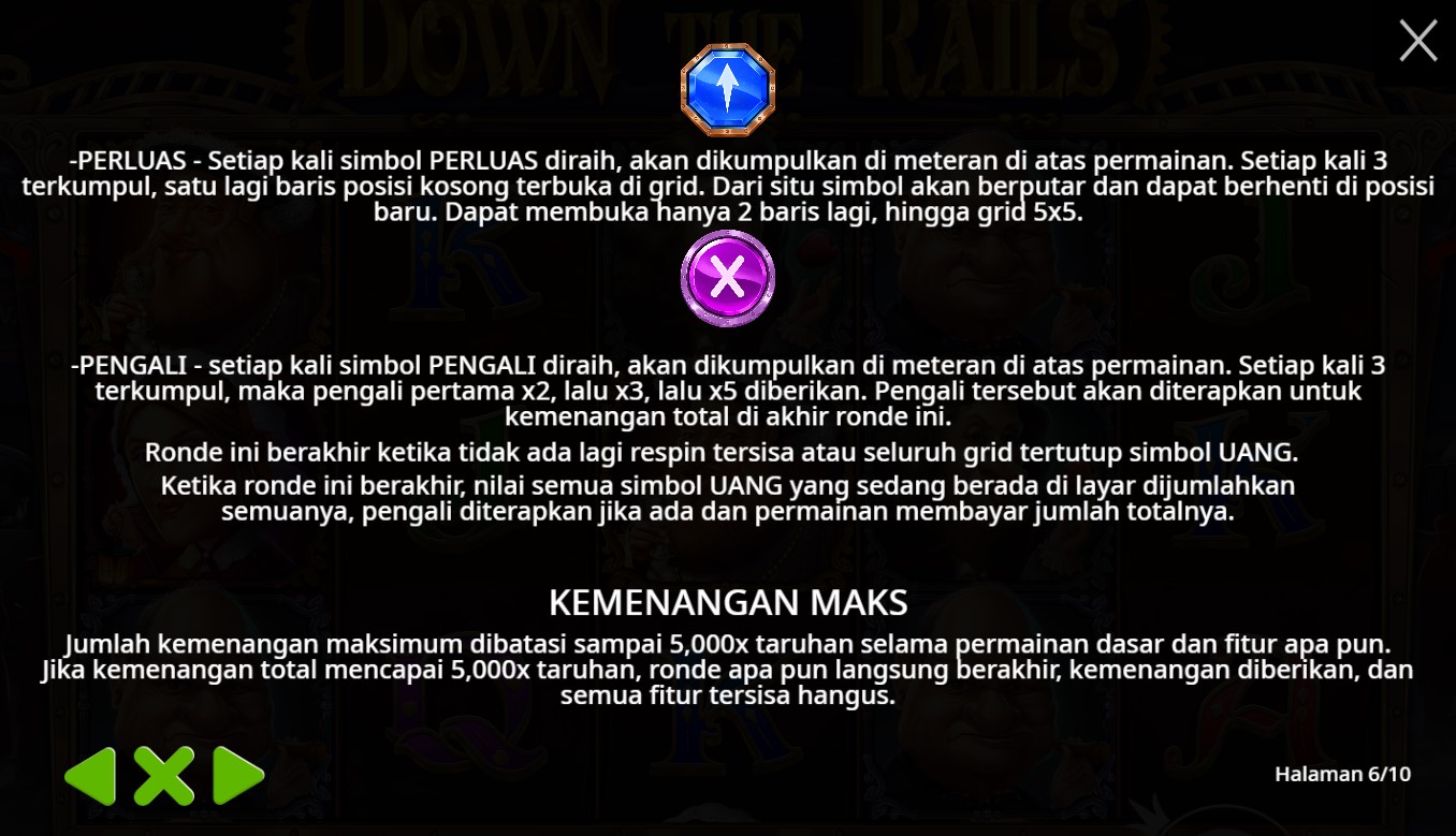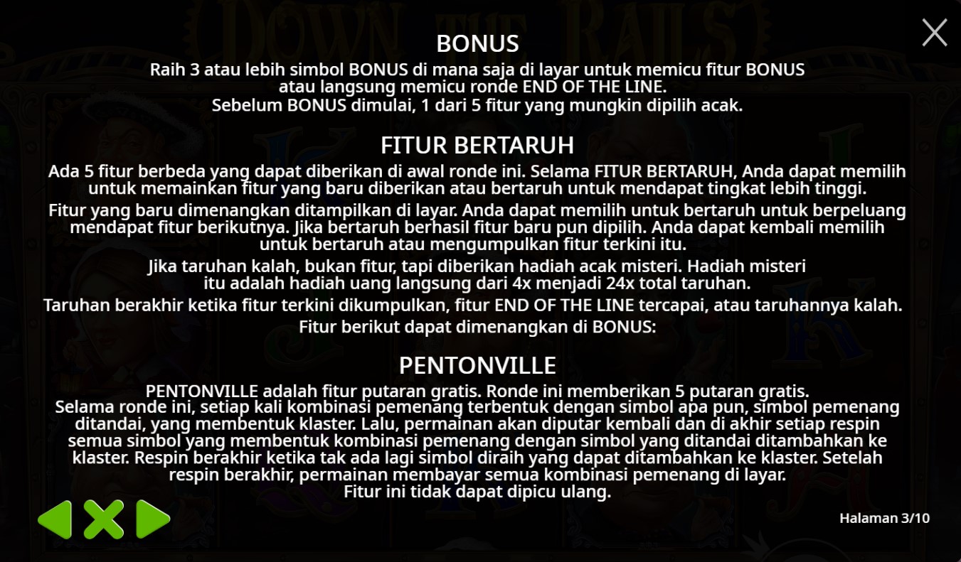 Paytable Slot Online Terpercaya Down The Rails adalah informasi penting yang menunjukkan berapa banyak pemain dapat menang pada setiap kombinasi simbol dalam permainan slot tersebut. Dalam Down The Rails, pemain dapat menemukan berbagai simbol yang terkait dengan tema kereta api, seperti lokomotif, rel, dan penumpang. Setiap simbol memiliki nilai yang berbeda, dan paytable juga mencakup informasi mengenai fitur bonus, putaran gratis, dan mekanik permainan lainnya. Memahami paytable sangat penting untuk meningkatkan peluang menang dan memaksimalkan pengalaman bermain slot online. Pastikan untuk selalu bermain di situs terpercaya untuk keamanan dan kenyamanan.