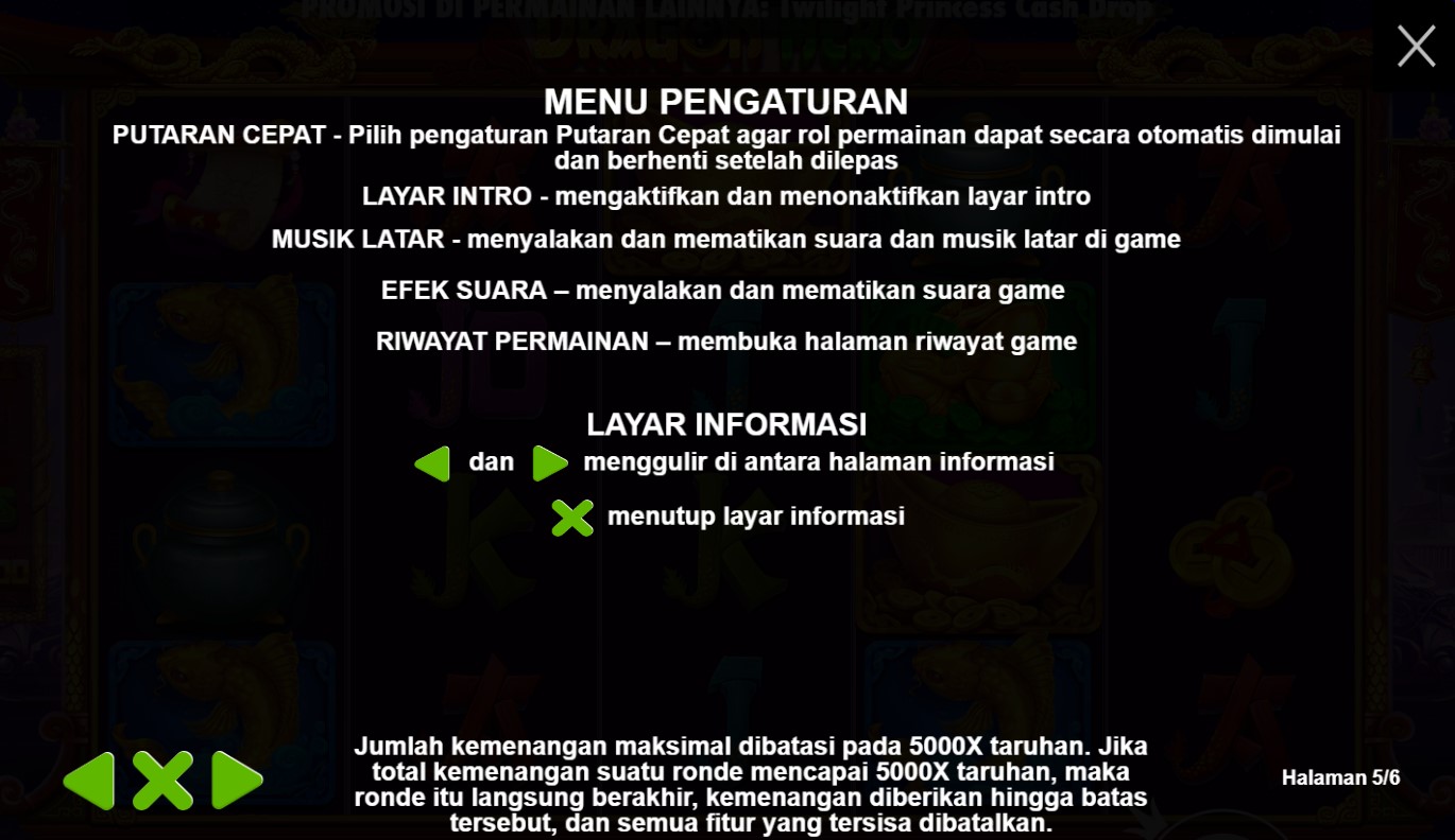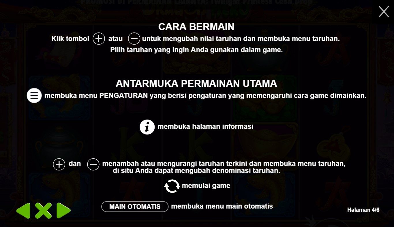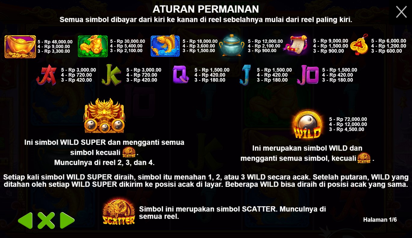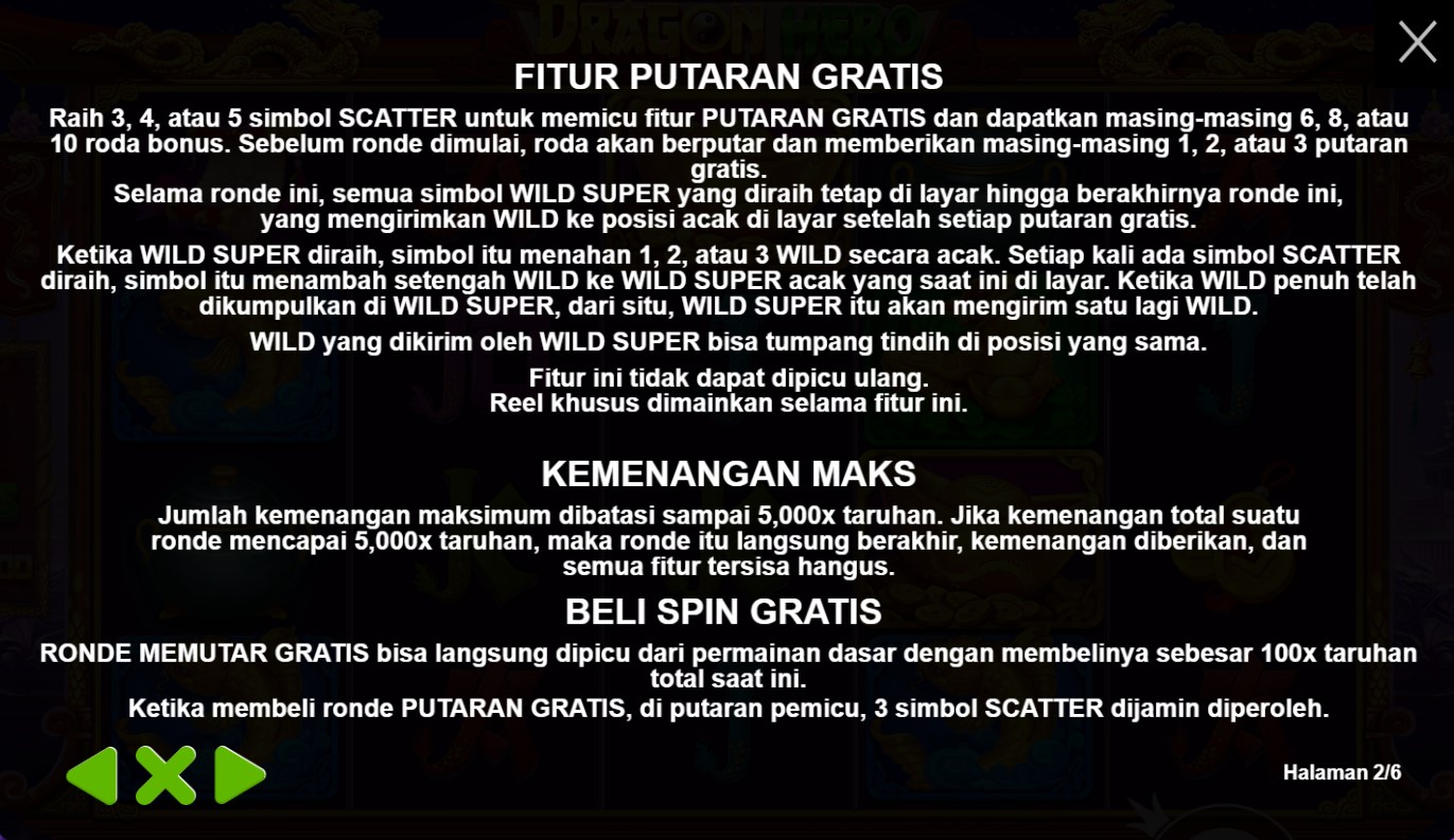 Paytable Dragon Hero adalah kunci rahasia yang akan membawa Anda menuju dunia ajaib yang dipenuhi dengan kekuatan naga dan harta karun yang menakjubkan. Dalam paytable ini, Anda akan menemukan informasi yang lengkap dan terperinci tentang simbol-simbol yang memikat dan peluang kemenangan yang menarik dalam permainan slot online terpercaya ini. Paytable Dragon Hero juga akan mengungkapkan fitur-fitur menarik yang ada dalam permainan ini.Di antaranya adalah Dragon Wilds, di mana simbol naga perkasa akan mendarat di gulungan dan mengubah simbol-simbol lain menjadi Wilds yang meningkatkan peluang Anda untuk meraih kombinasi kemenangan yang menguntungkan. Selain itu, Anda akan menemukan fitur Hero Spins yang menghadirkan pahlawan berani yang memutar gulungan dengan keahliannya, membawa hadiah-hadiah yang menggiurkan.