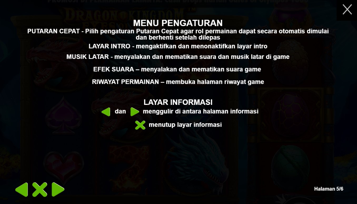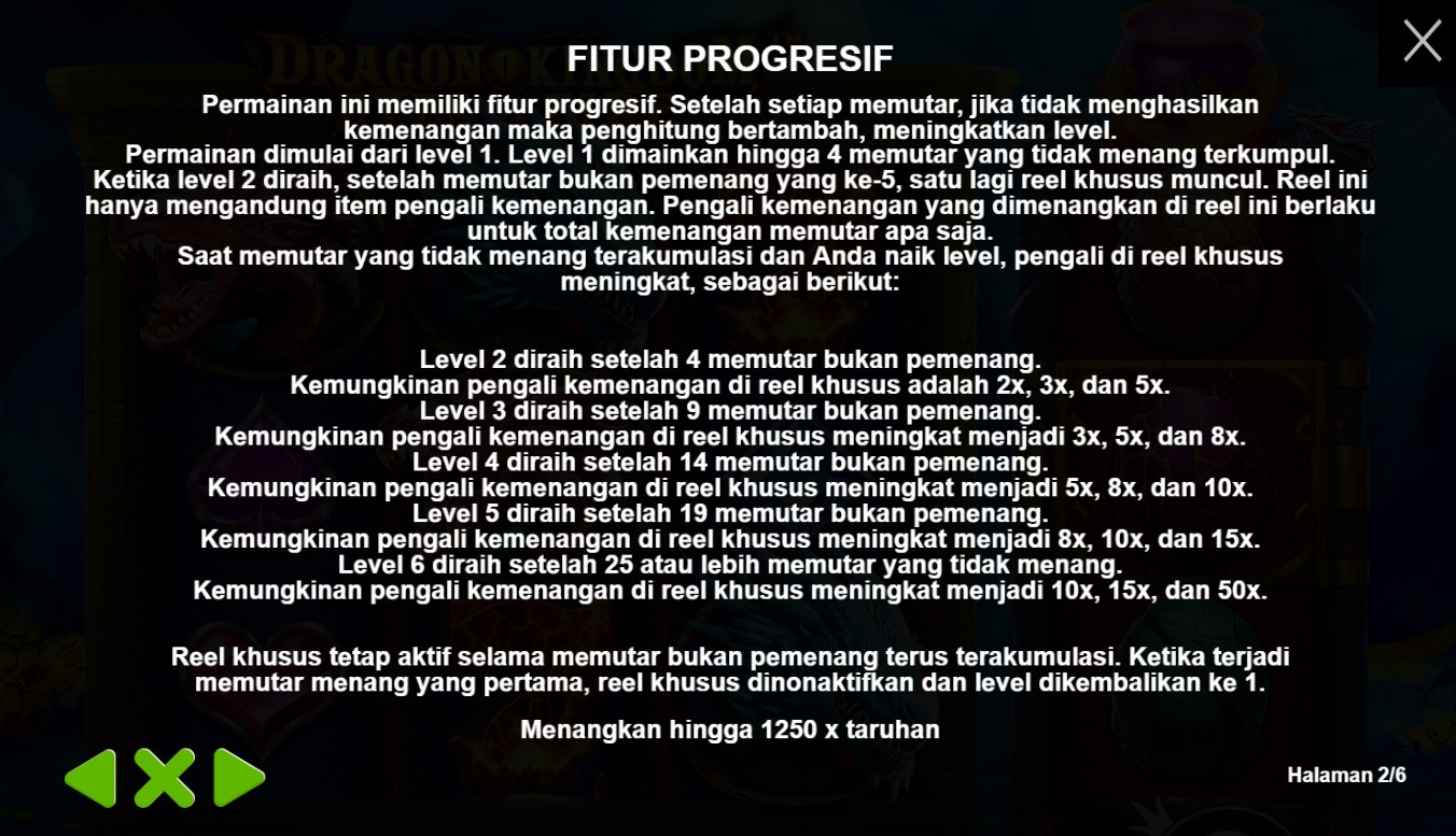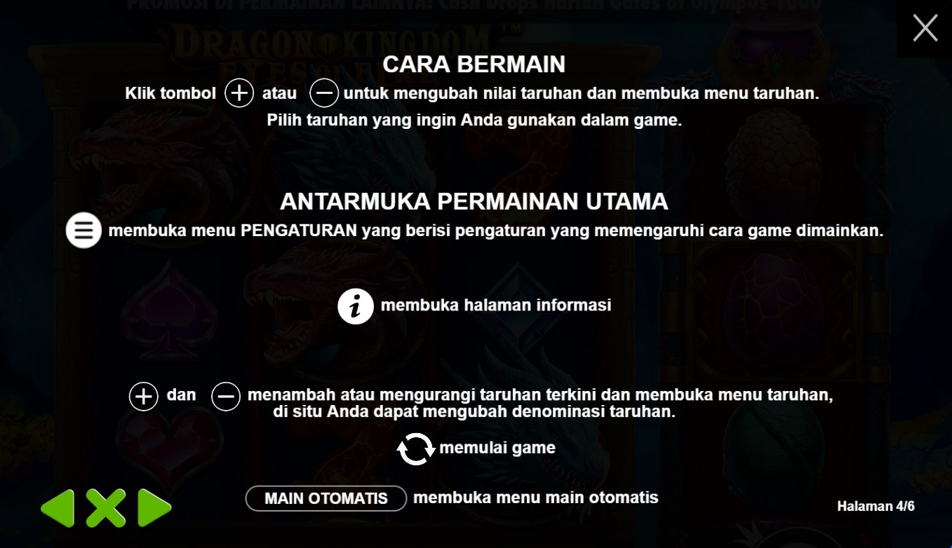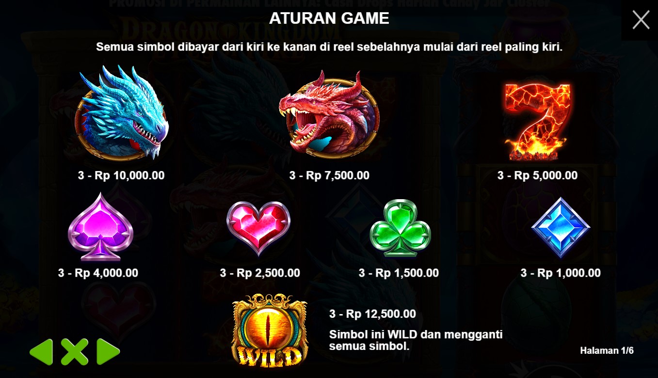 Paytable Dragon Kingdom Eyes Of Fire adalah kunci rahasia yang membuka pintu menuju keajaiban dan kemenangan di dalam permainan slot online terpercaya ini. Dalam paytable ini, terungkap detail lengkap tentang simbol-simbol yang mempesona yang menghiasi gulungan slot, memandu Anda melalui petualangan yang memukau di kerajaan yang dipenuhi dengan mata api naga yang membara. Paytable Dragon Kingdom Eyes Of Fire juga mengungkap fitur-fitur istimewa yang menghidupkan permainan dan meningkatkan peluang kemenangan Anda. Misalnya, fitur Dragon Wilds, di mana mata api naga akan mendarat di gulungan dan mengubah simbol-simbol lain menjadi Wilds yang meningkatkan peluang Anda untuk meraih kombinasi kemenangan yang menguntungkan. Selain itu, Anda juga akan menemukan fitur Free Spins yang memberikan kesempatan untuk memenangkan putaran gratis dan menjelajahi dunia yang membara dengan peluang ekstra untuk meraih hadiah-hadiah yang menakjubkan.