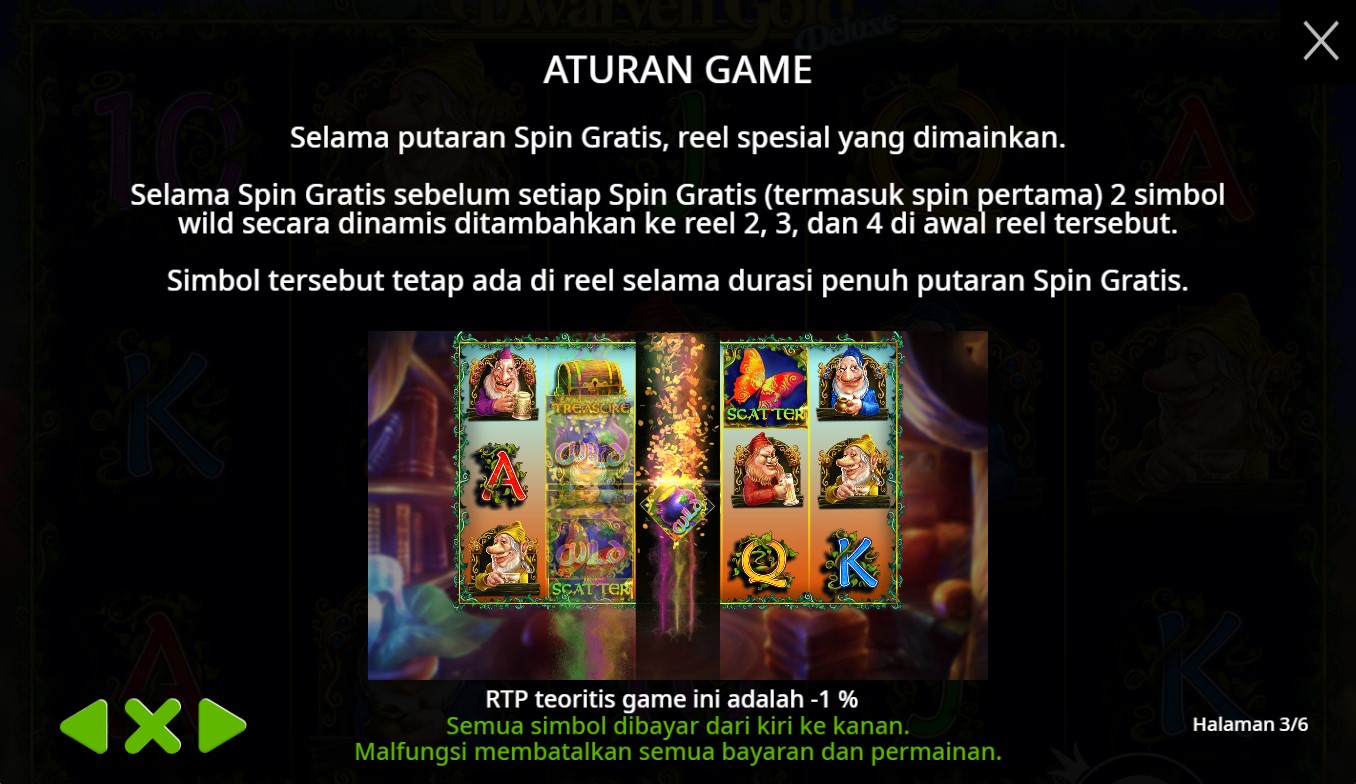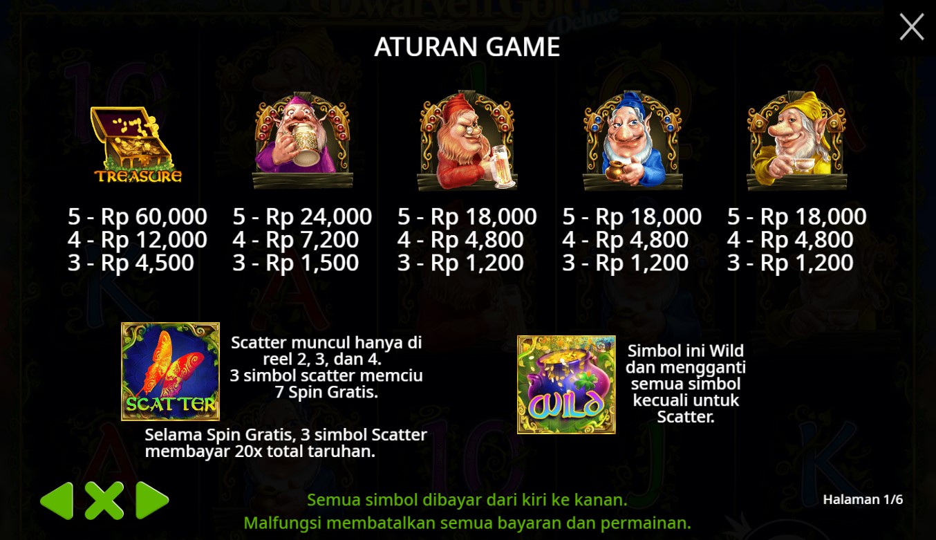 Paytable Slot Online Dwarven Gold Deluxe adalah panduan lengkap yang mengungkap simbol-simbol menarik dalam permainan ini. Simbol paling berharga adalah peti harta, yang menawarkan kemenangan hingga 500 kali lipat taruhan untuk lima simbol yang cocok. Di samping itu, terdapat empat simbol kurcaci berwarna—kurcaci ungu, merah, biru, dan kuning—yang masing-masing memberikan payout yang menggiurkan hingga 1.000 koin saat Anda mendapatkan kombinasi yang tepat.