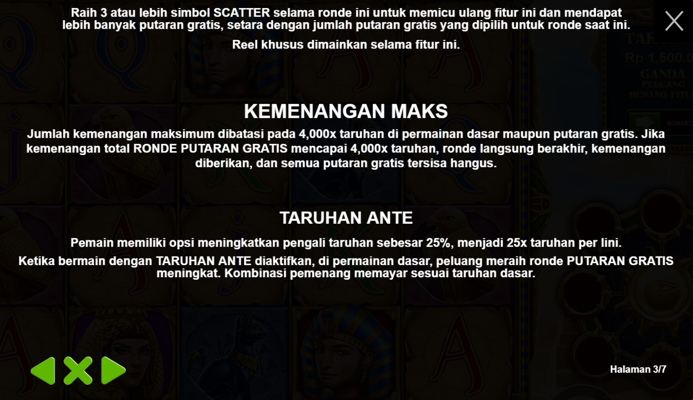 Paytable Eye Of Cleopatra adalah panduan yang membawa Anda ke dalam dunia misteri dan pesona Mesir Kuno dalam permainan slot online terpercaya ini. Dengan rincian yang komprehensif tentang simbol-simbol dan fitur-fitur istimewa, paytable ini akan membantu Anda memahami cara memenangkan hadiah yang mengagumkan dan merasakan keajaiban yang tersembunyi di balik gulungan permainan. Selain simbol-simbol berharga, paytable juga mengungkapkan fitur-fitur istimewa yang menarik dalam Eye Of Cleopatra. Salah satu fitur yang patut diperhatikan adalah simbol mata kucing yang berperan ganda sebagai simbol liar dan simbol pencar. Sebagai simbol liar, mata kucing dapat menggantikan simbol lainnya untuk membentuk kombinasi pemenang. Dan ketika tiga atau lebih simbol mata kucing muncul, mereka memicu putaran bonus yang menarik. Putaran bonus dalam Eye Of Cleopatra membawa Anda ke dalam ruangan rahasia Cleopatra, di mana Anda diberikan sejumlah putaran gratis. Selama putaran bonus, simbol mata kucing dapat memperluas gulungan, meningkatkan peluang Anda untuk meraih kemenangan yang memukau. Juga, terdapat fitur perjudian yang memberi Anda kesempatan untuk menggandakan kemenangan Anda dengan memilih warna kartu yang tepat.