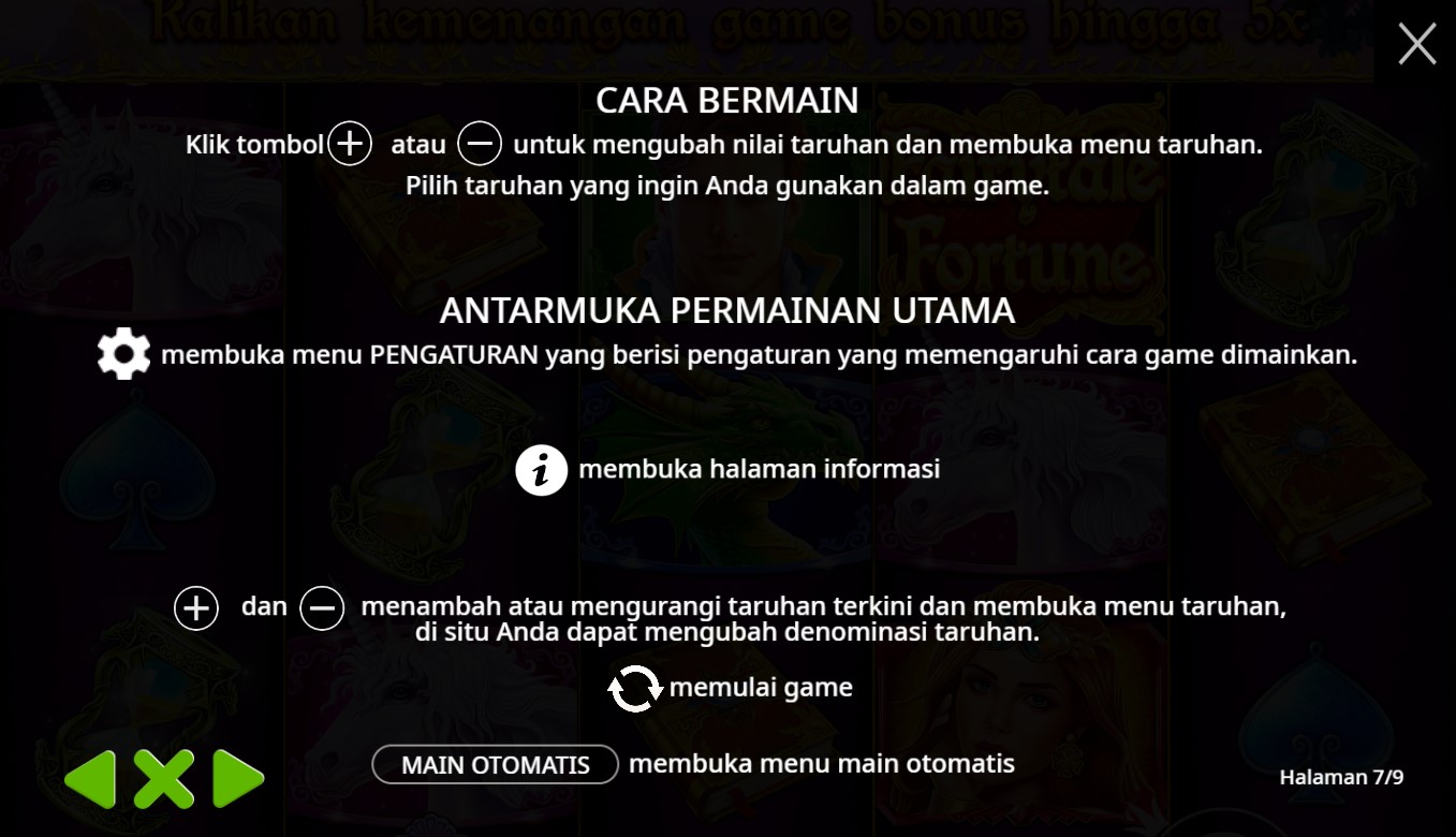 Paytable Slot Online Fairytale Fortune adalah fitur yang memamerkan kekayaan simbol-simbol ikonik dari dunia fantasi. Dikembangkan oleh Pragmatic Play, slot online terpercaya ini menawarkan pemandangan visual yang memukau, membawa pemain ke dalam petualangan magis yang tak terlupakan. Pada paytable Fairytale Fortune, pemain akan menemukan beragam simbol yang menggambarkan elemen-elemen fantastis. Ada simbol-simbol seperti mahkota, tongkat sihir, unicorn, kurcaci, dan putri cantik yang menambah kesan fantasi yang kental. Simbol-simbol ini tidak hanya memanjakan mata, tetapi juga menawarkan pembayaran yang menggiurkan bagi pemain yang berhasil mendapatkan kombinasi pemenang.