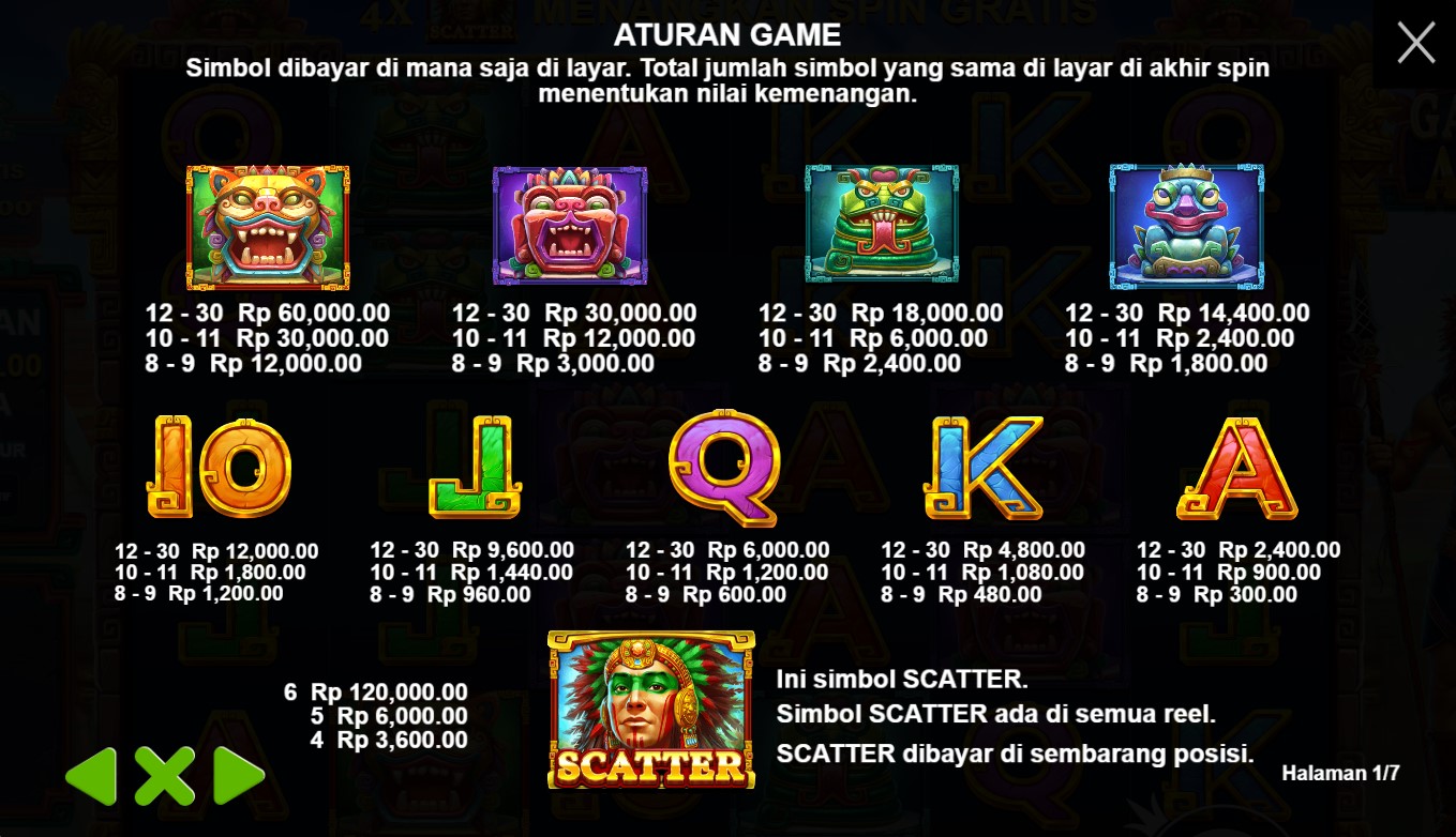 Paytable Slot Online Gates Of Aztec adalah kunci untuk memahami simbol-simbol yang menghiasi gulungan slot ini. Simbol-simbol khas Aztec, seperti kalender surya, ukiran batu, dan dewa-dewa Aztec, menjadi pusat perhatian dalam permainan ini. Selain itu, simbol-simbol lain yang memikat, seperti harta karun emas, topeng Aztec, dan hewan-hewan hutan hujan tropis, juga turut memeriahkan gulungan slot. Simbol Wild, yang digambarkan sebagai ikon kekuatan mistis, berperan sebagai pengganti simbol lain untuk membentuk kombinasi kemenangan yang menguntungkan. Sementara simbol Scatter, yang sering kali diwakili oleh gambar piramida Aztec yang megah, dapat memicu fitur bonus yang menggiurkan. Dengan kombinasi simbol-simbol yang menarik dan beragam, Gates Of Aztec menawarkan pengalaman bermain yang seru dan penuh kejutan bagi para penggemar slot online. Segera jelajahi keindahan simbol-simbol ini dan rasakan keajaiban kemenangan dengan Gates Of Aztec, slot online terpercaya dari Pragmatic Play.
