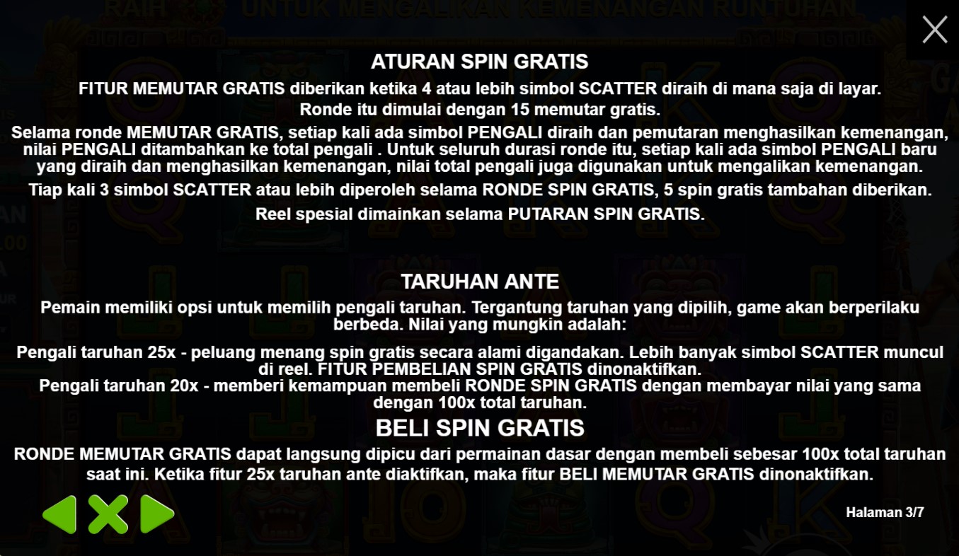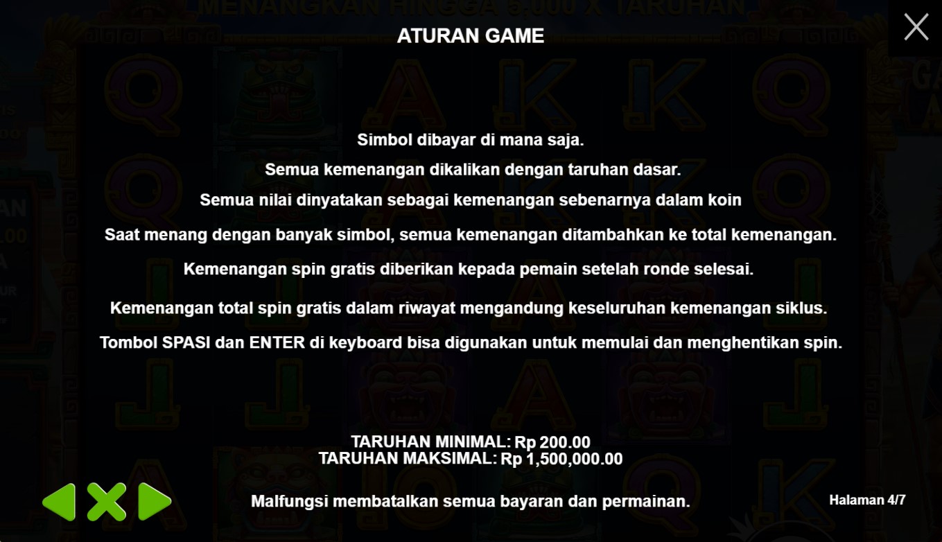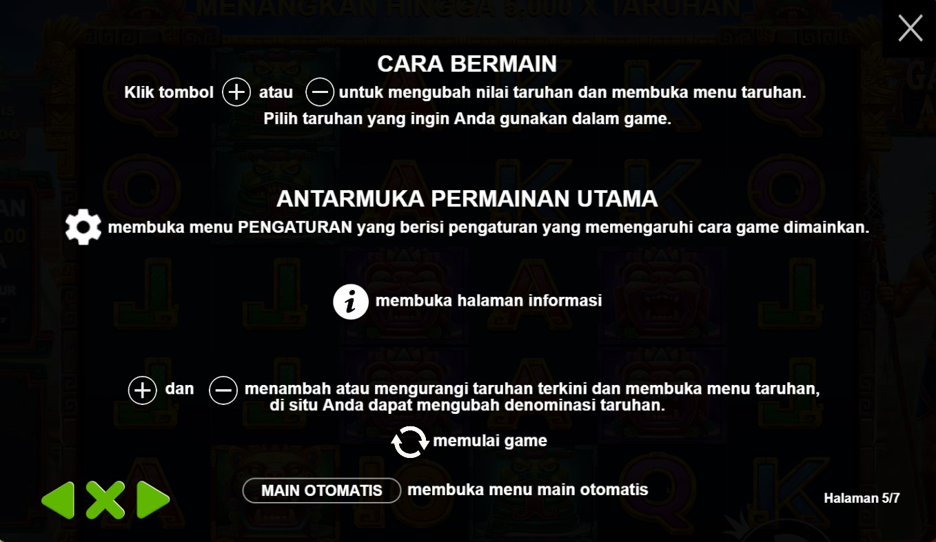 Gates Of Aztec adalah slot online yang memikat, mengajak pemain untuk menjelajahi keajaiban dan misteri peradaban kuno Aztec. Dengan tema yang eksotis dan grafis yang memukau, pemain akan dibawa dalam petualangan epik yang penuh dengan kekayaan dan keberuntungan. Simbol-simbol khas Aztec, seperti kalender surya, ukiran batu, dan dewa-dewa Aztec, menghiasi gulungan slot dan menciptakan atmosfer bermain yang magis dan mengasyikkan. Fitur-fitur bonus yang menarik, seperti putaran gratis dan simbol Wild yang menggantikan simbol lain, memberikan kesempatan besar untuk meraih kemenangan besar.