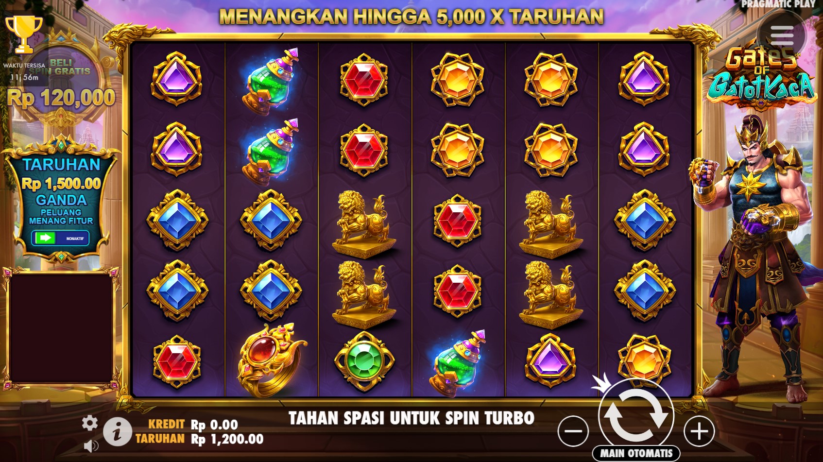 Gates Of Gatot Kaca!! Slot Online Terpercaya dari Pragmatic Play adalah tiket Anda untuk petualangan yang epik dan keseruan yang tak terlupakan. Dalam permainan yang memikat ini, Anda akan merasakan sensasi luar biasa dari tema yang unik, grafis yang memukau, dan fitur-fitur menarik yang menawarkan peluang besar untuk meraih kemenangan yang spektakuler. Gates Of Gatot Kaca menghadirkan pengalaman bermain yang tak tertandingi dengan grafis yang memikat dan detail yang luar biasa. Anda akan terpesona oleh keindahan simbol-simbol mitologi Indonesia yang kuat dan simbol-simbol khas dari cerita Gatot Kaca. Ditambah lagi, fitur-fitur inovatif seperti putaran gratis, fitur bonus, dan simbol liar akan meningkatkan keseruan permainan dan memberikan peluang nyata untuk memenangkan hadiah-hadiah yang mengagumkan. Sebagai Slot Online Terpercaya dari Pragmatic Play, Gates Of Gatot Kaca juga menjamin keadilan dan keandalan dalam setiap putaran. Anda dapat memainkan permainan ini dengan keyakinan, mengetahui bahwa peluang Anda untuk meraih kemenangan adil dan sebanding dengan taruhan Anda.