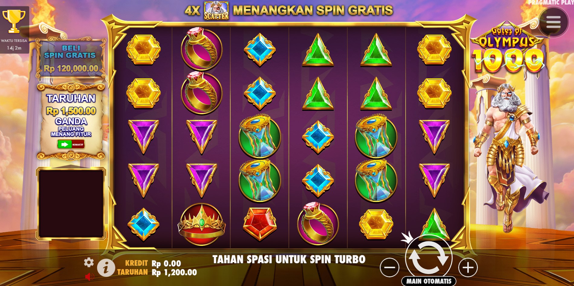 Gates Of Olympus adalah langkah terbaru dalam evolusi dunia mesin slot online terpercaya. Dikembangkan oleh Pragmatic Play, salah satu penyedia permainan terkemuka di industri ini, slot ini menawarkan petualangan yang luar biasa di dalam dunia mitologi Yunani yang memikat. Dengan judul yang menggugah imajinasi, "Gates Of Olympus 1000!!", permainan ini menjanjikan pengalaman bermain yang tak terlupakan dan hadiah yang menggiurkan. Seperti namanya, Gates Of Olympus membuka pintu menuju dunia dewa-dewi dan makhluk legendaris yang menghuni Gunung Olympus. Begitu Anda memasuki permainan, Anda akan segera terpukau oleh latar belakang yang memukau, dengan langit biru yang cerah dan pemandangan gunung yang menjulang tinggi. Suasana magis ini menciptakan aura yang memikat, mengajak Anda untuk memulai petualangan yang menegangkan di dalam slot online ini.