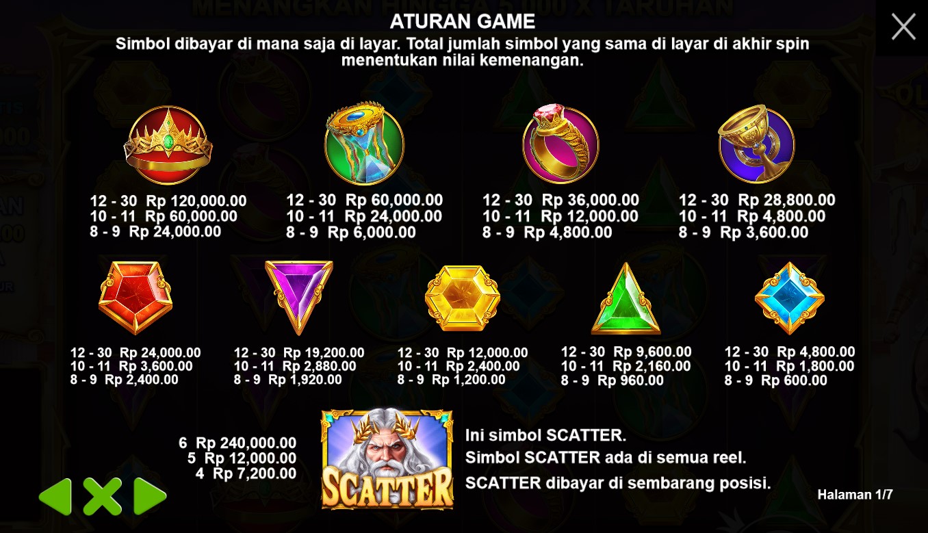 Paytable Slot Online Terpercaya Gates Of Olympus