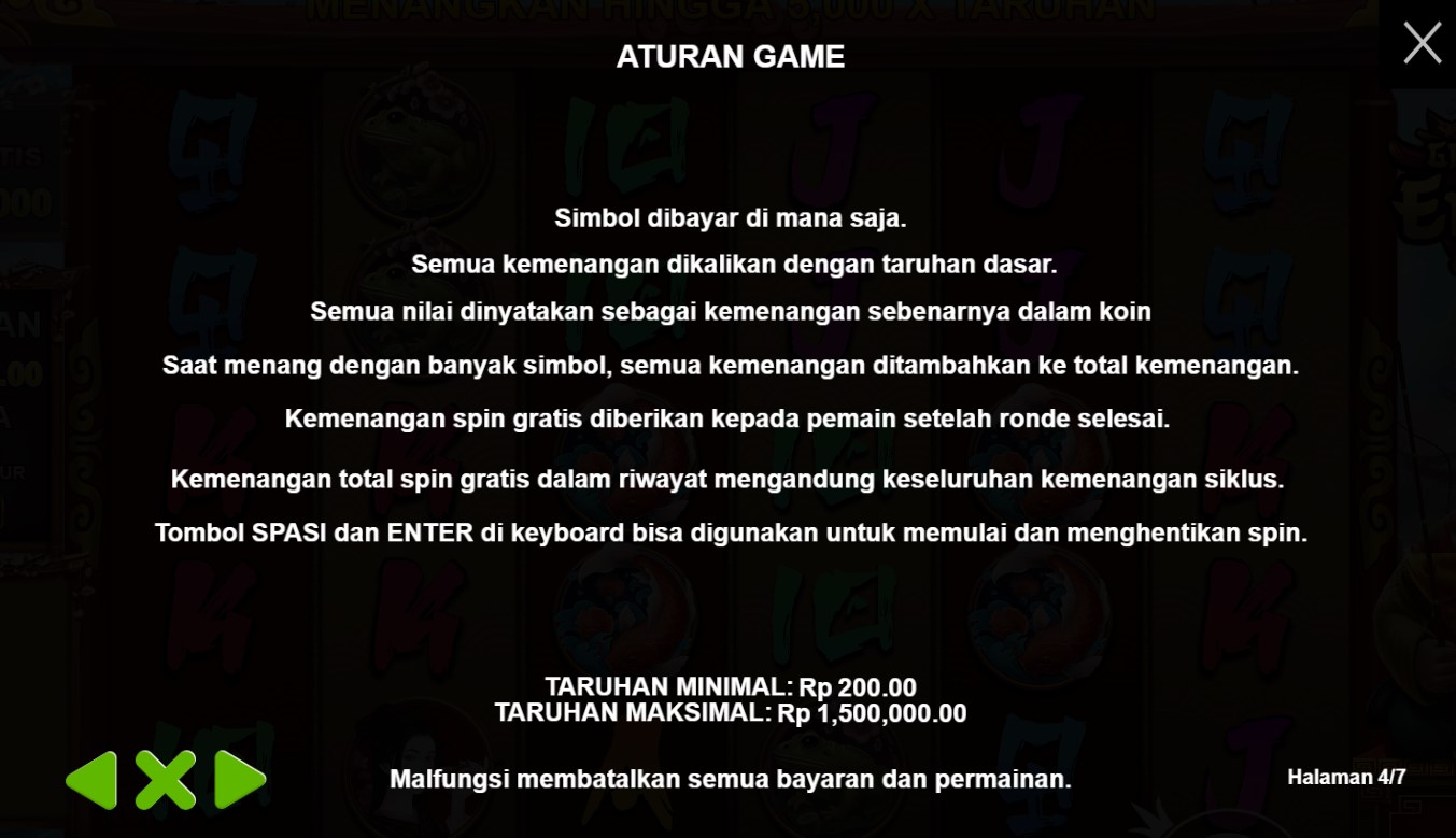 Paytable Slot Online Grace Of Ebisu adalah koin keberuntungan, bunga sakura, dewa keberuntungan Ebisu, dan simbol klasik seperti angka dan huruf. Koin keberuntungan melambangkan kemakmuran dan keberuntungan, sementara bunga sakura mewakili keindahan dan semangat Jepang yang khas. Dewa keberuntungan Ebisu adalah simbol yang paling bernilai, membawa keberuntungan dan kemenangan kepada para pemain. Selain itu, simbol Wild yang digambarkan sebagai lubang hitam, berperan sebagai pengganti simbol lain untuk membentuk kombinasi kemenangan yang menguntungkan. Simbol Scatter, yang sering kali diwakili oleh gambar pesawat luar angkasa, dapat memicu fitur bonus dan putaran gratis yang menggiurkan. Dengan kombinasi simbol-simbol yang menarik dan beragam, Grace Of Ebisu menawarkan pengalaman bermain yang seru dan penuh kejutan bagi para penggemar slot online. Segera bergabunglah dalam petualangan magis ini dan rasakan keajaiban kemenangan dengan Grace Of Ebisu, slot online terpercaya dari Pragmatic Play.