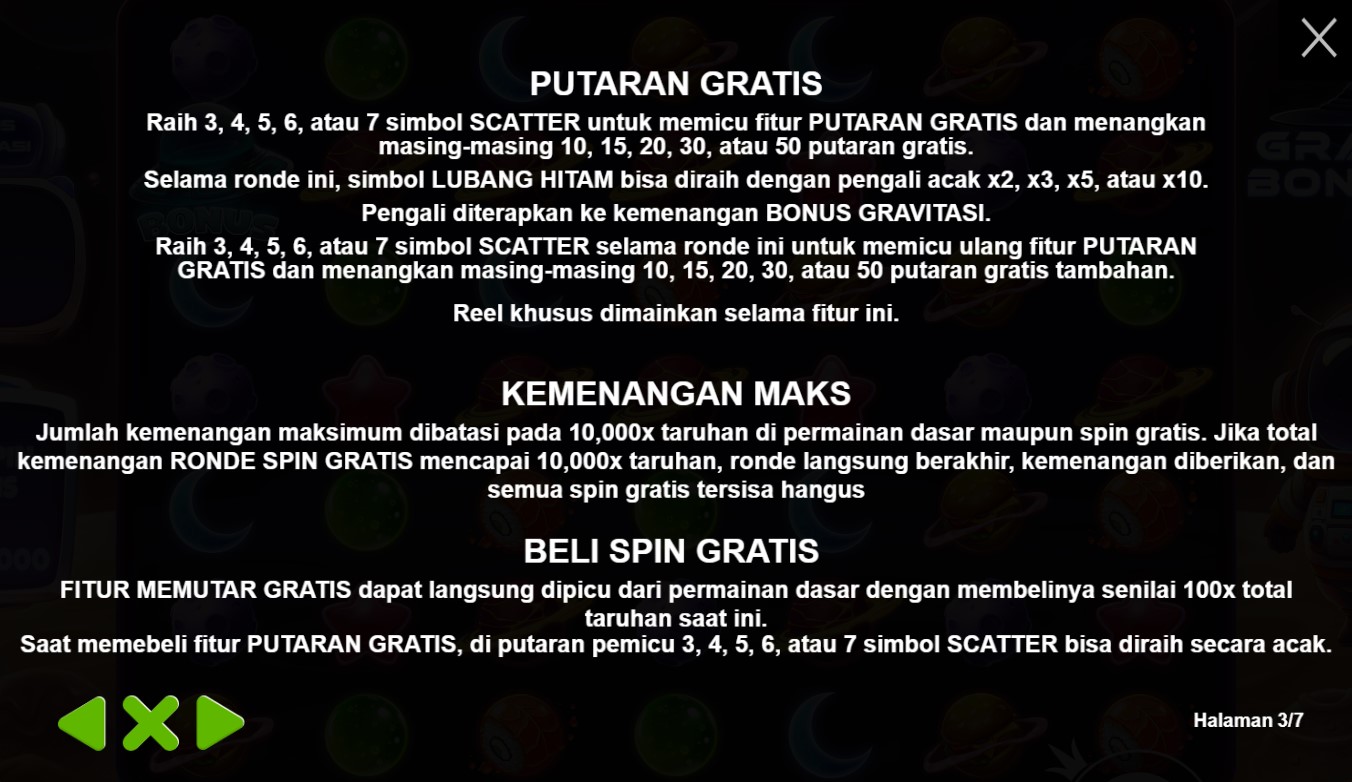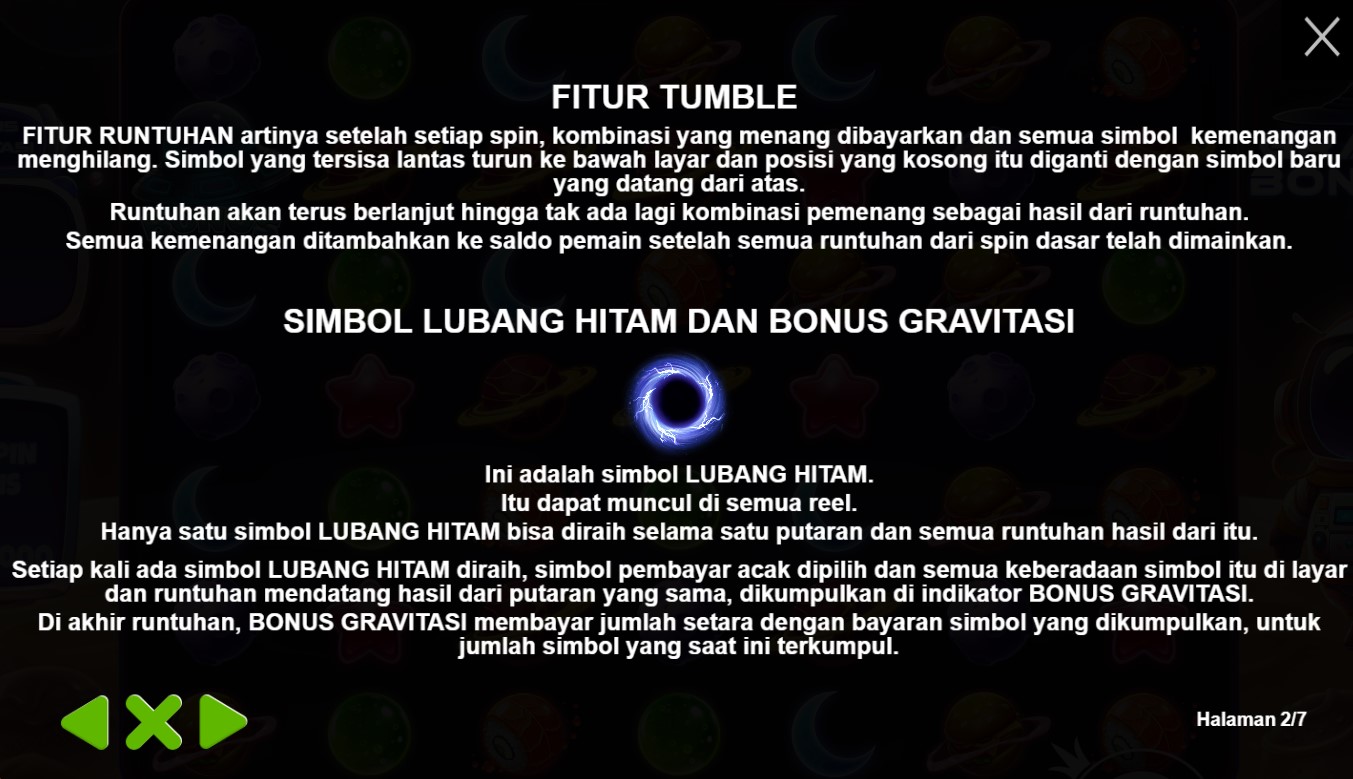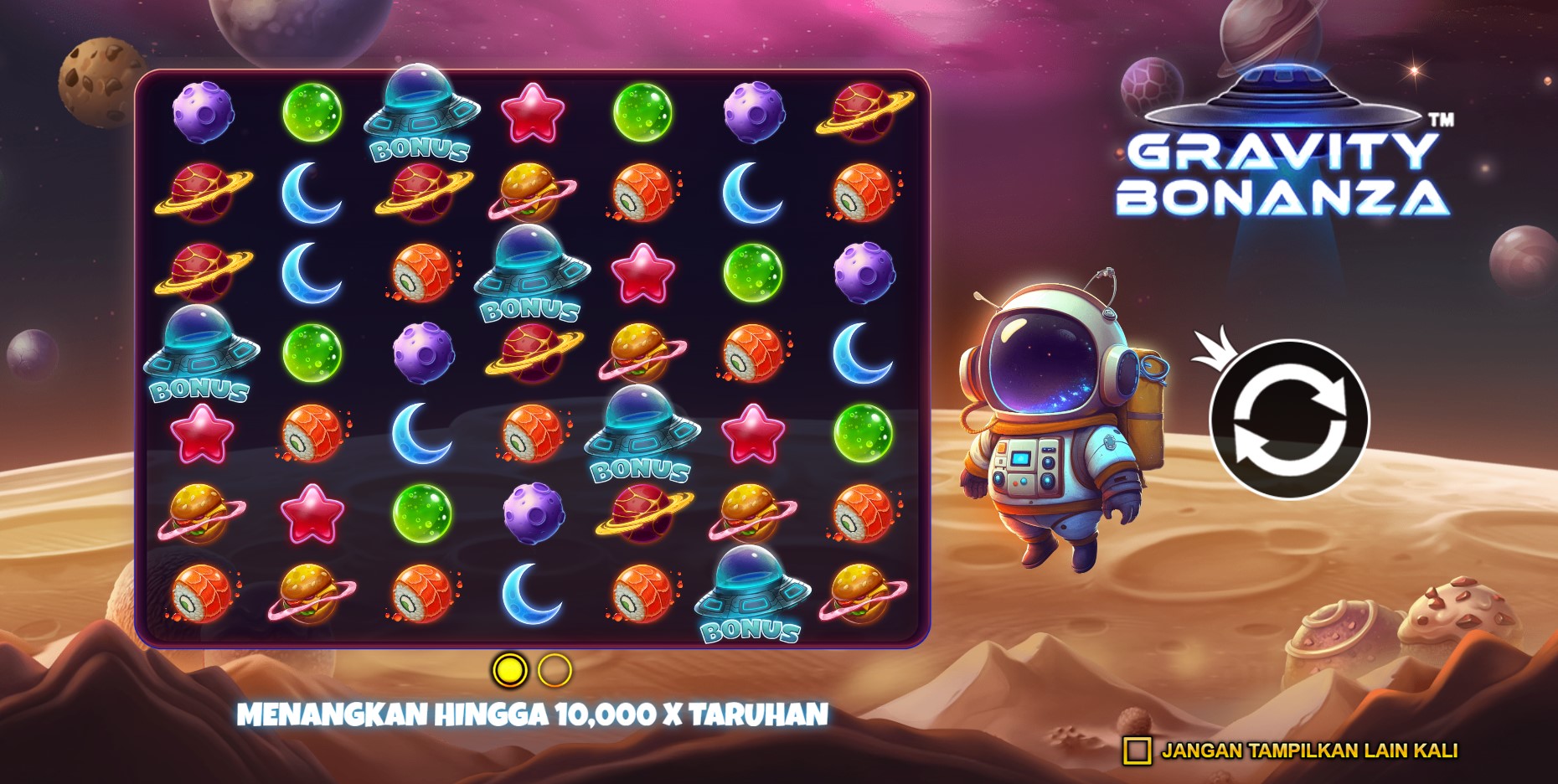 Gravity Bonanza adalah slot online yang menghadirkan pengalaman bermain yang unik dan inovatif. Dengan konsep gravitasi yang unik, pemain akan dibawa ke dunia di mana simbol-simbol jatuh dari atas layar dan membentuk kombinasi-kombinasi kemenangan yang spektakuler. Dengan fitur Cascading Reels yang ikonik, setiap kali pemain berhasil meraih kemenangan, simbol-simbol tersebut akan meledak dan memberikan ruang bagi simbol-simbol baru untuk jatuh ke posisi yang kosong, menciptakan peluang untuk meraih kemenangan berturut-turut.