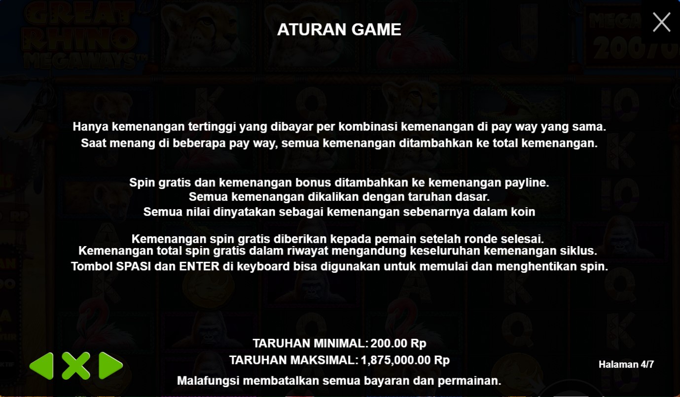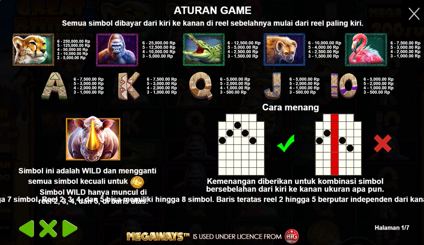 Paytable Slot Online Terpercaya Great Rhino Megaways