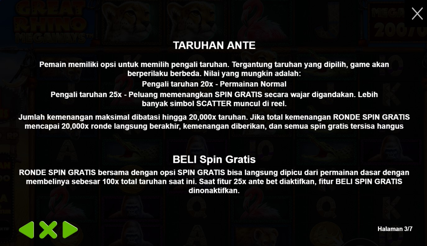 Great Rhino Megaways!! Slot Online Terpercaya dari Pragmatic Play, di mana Anda akan merasakan keunggulan permainan yang memungkinkan Anda menaklukkan keajaiban Megaways dan keberuntungan liar di tengah dunia binatang yang memukau. Dalam permainan ini, Anda akan memasuki arena yang tak terlupakan dengan fitur Megaways, yang memberikan ribuan cara berbeda untuk meraih kemenangan setiap kali gulungan berputar. Great Rhino Megaways menghadirkan keindahan binatang-binatang yang menakjubkan, seperti badak, singa, kuda nil, dan lainnya, yang menghiasi gulungan permainan dengan pesona alam liar yang tak tergantikan. Anda akan terpesona oleh detail lanskap savana yang menakjubkan, menciptakan atmosfer petualangan yang tiada tanding.