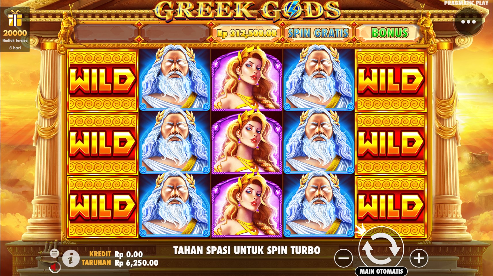 Greek Gods adalah persembahan tak tertandingi dalam dunia slot online terpercaya dari Pragmatic Play, di mana Anda akan merasakan keajaiban mitologi Yunani dan kekuatan para dewa. Dalam permainan ini, Anda akan dibawa pada perjalanan epik melintasi Olympus yang legendaris, dihiasi dengan simbol-simbol dewa-dewa yang kuat dan makhluk mitologi yang menakjubkan. Greek Gods menghadirkan grafis yang memukau dan suara yang memikat, menciptakan atmosfer yang memikat sejak awal. Anda akan terpesona oleh keindahan lanskap Yunani yang dipenuhi dengan kuil-kuil klasik, kolom-kolom megah, dan langit biru yang mempesona.