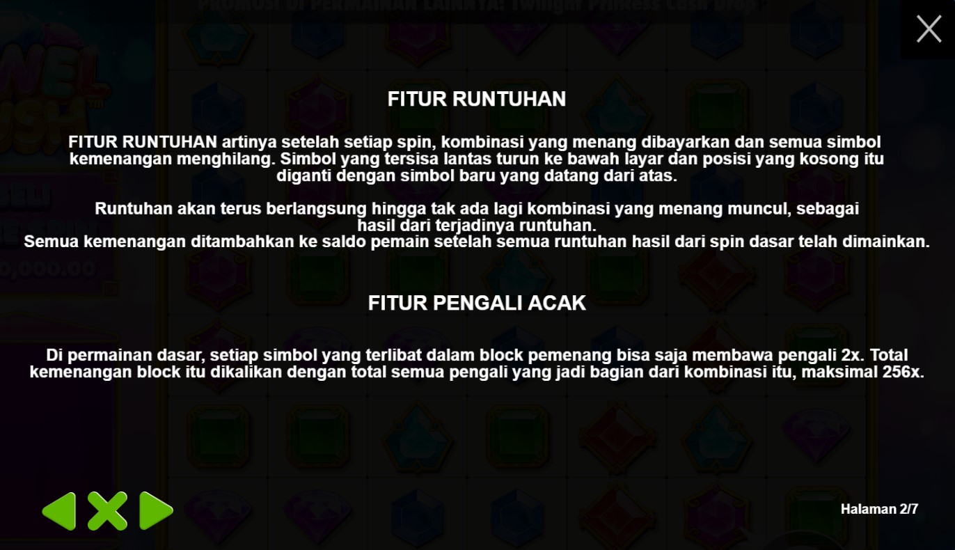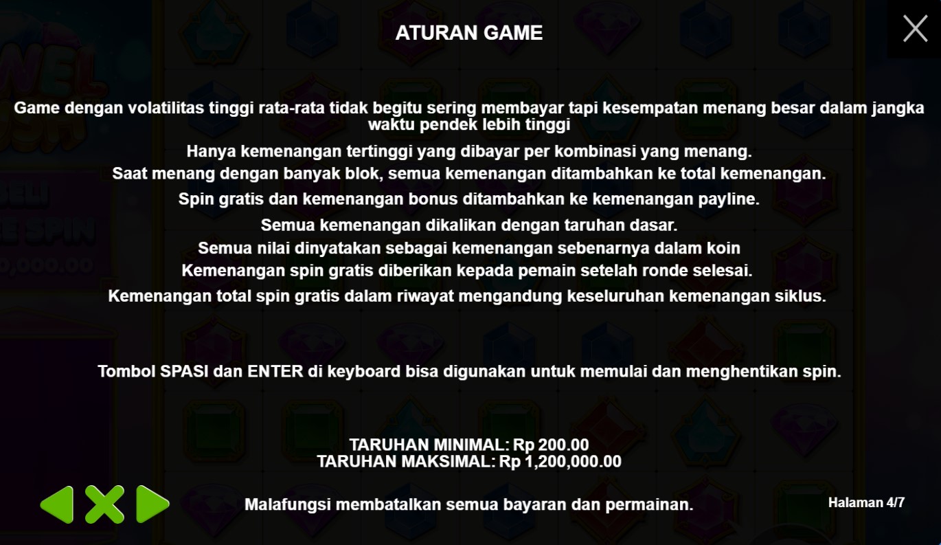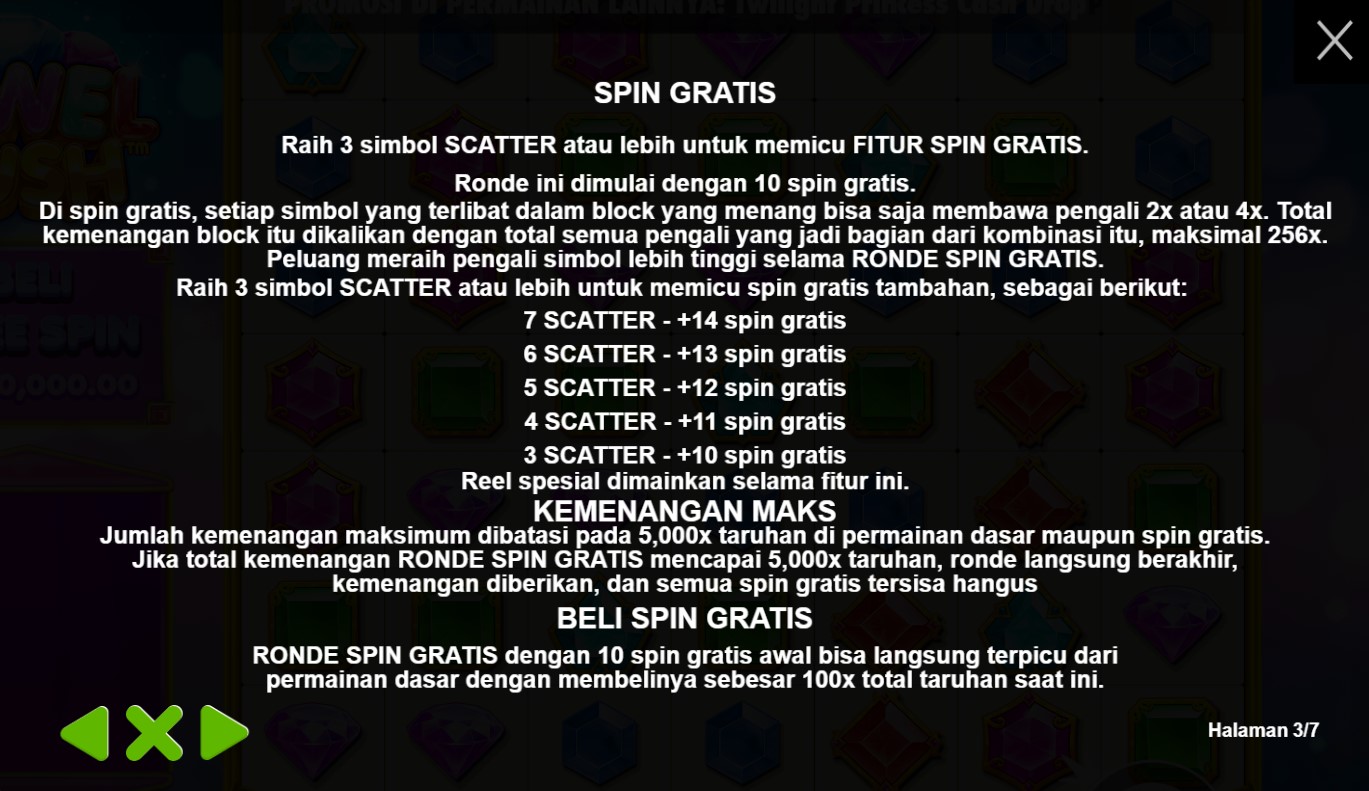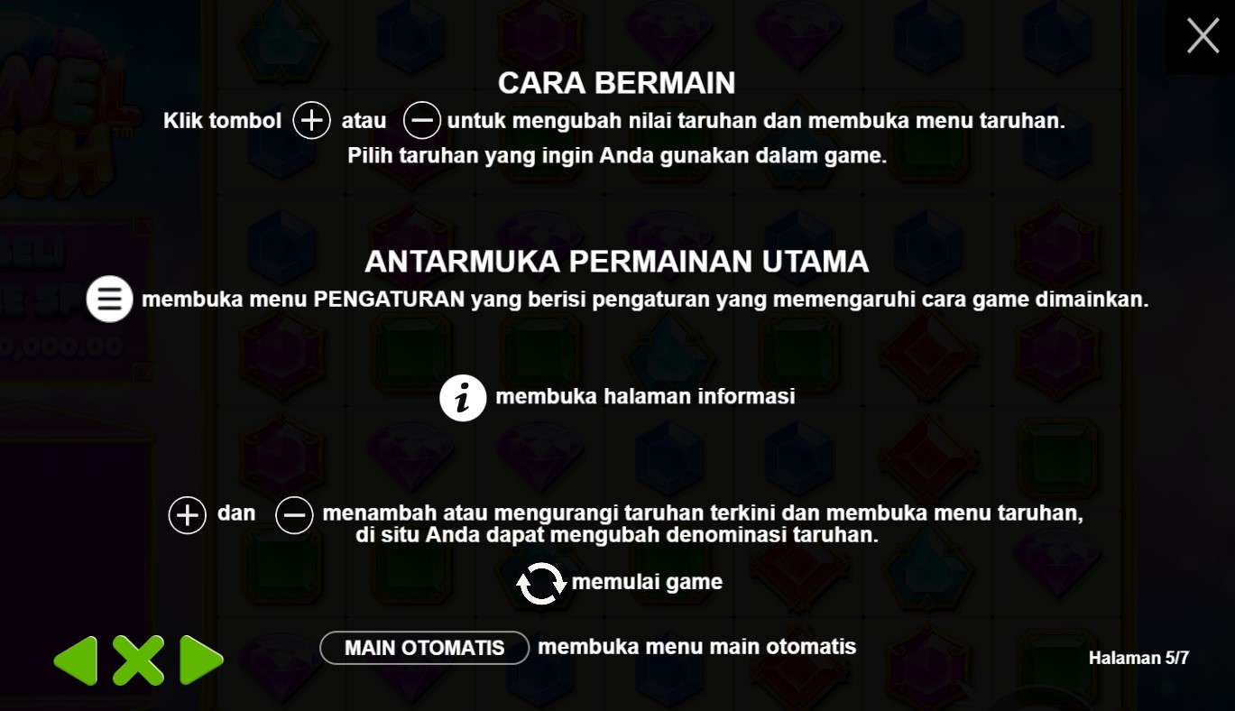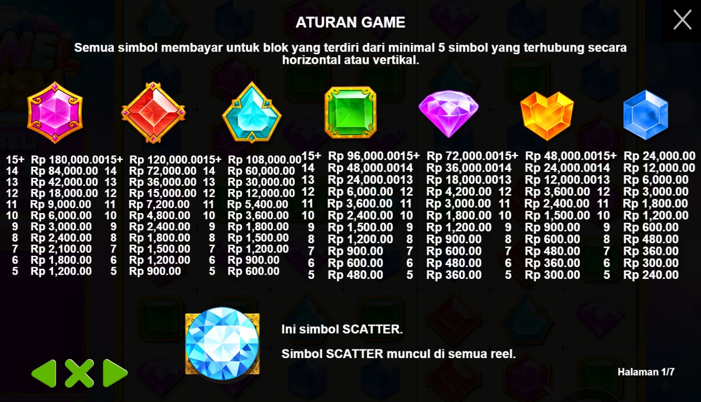 Paytable Jewel Rush adalah panduan yang mengungkap simbol-simbol menarik dan potensi kemenangan dalam permainan slot online terpercaya ini. Dalam perjalanan petualangan yang penuh dengan harta karun berlian ini, dikembangkan oleh Pragmatic Play, Anda akan menemui simbol-simbol yang memikat, termasuk berlian, batu mulia, dan alat-alat penambang. Setiap simbol memiliki nilai yang berbeda, dan kombinasi yang tepat akan membawa Anda pada hadiah-hadiah yang menggiurkan. Dalam Paytable Jewel Rush, Anda akan menemukan informasi penting tentang simbol-simbol yang perlu Anda perhatikan dan strategi yang dapat Anda gunakan untuk meraih kemenangan dalam permainan slot online ini. Fitur-fitur bonus yang menarik, seperti putaran gratis dengan pengganda kemenangan dan simbol-simbol Wild yang dapat meningkatkan peluang Anda, akan memperkaya pengalaman bermain Anda. Dengan melihat Paytable Jewel Rush, Anda akan memperoleh pemahaman yang lebih baik tentang simbol-simbol yang perlu Anda buru dan cara untuk meningkatkan potensi kemenangan Anda.