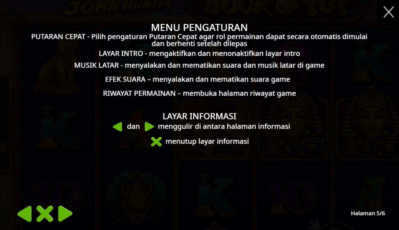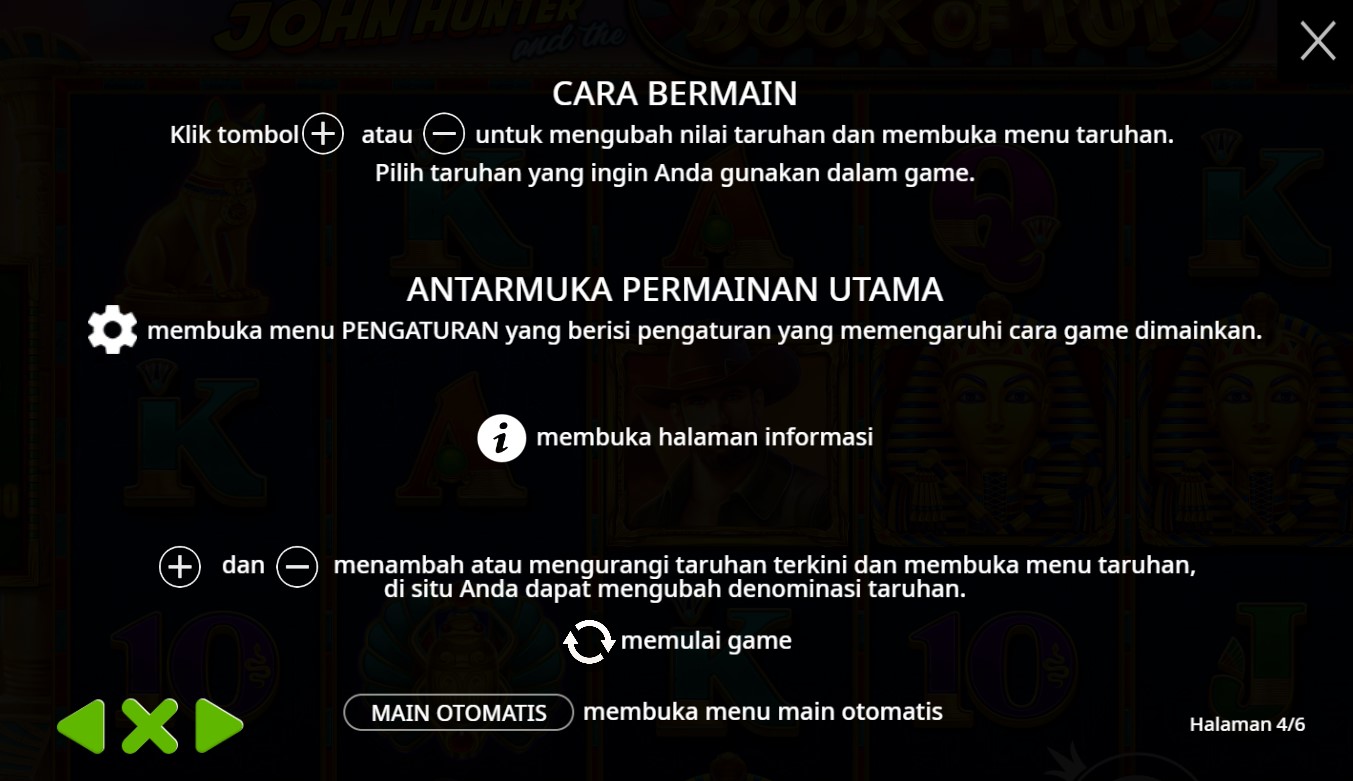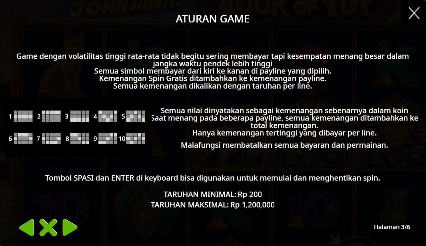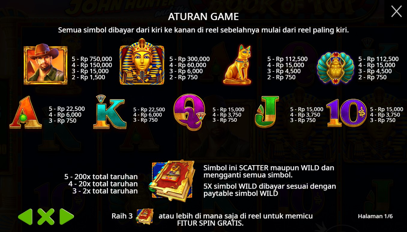 Paytable Slot Online Terpercaya John Hunter And The Book Of Tut adalah informasi penting bagi pemain yang ingin memahami cara kerja permainan slot ini. Dalam paytable, Anda akan menemukan rincian mengenai simbol-simbol yang digunakan, nilai masing-masing simbol, serta potensi kemenangan yang bisa didapatkan. Biasanya, simbol-simbol tinggi dalam permainan ini termasuk karakter utama seperti John Hunter, serta simbol-simbol bertema Mesir seperti scarab dan hieroglif. Selain itu, ada juga simbol khusus seperti 'Book', yang berfungsi sebagai simbol liar dan pencar, memberikan peluang tambahan untuk menang dan memicu fitur bonus.