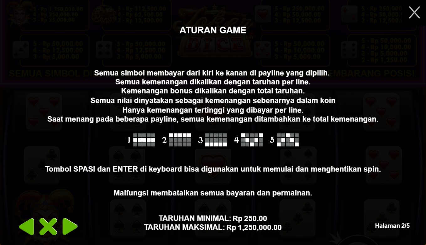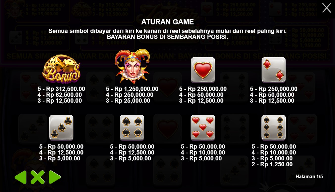 Paytable Slot Online Terpercaya Joker Jewels Dice