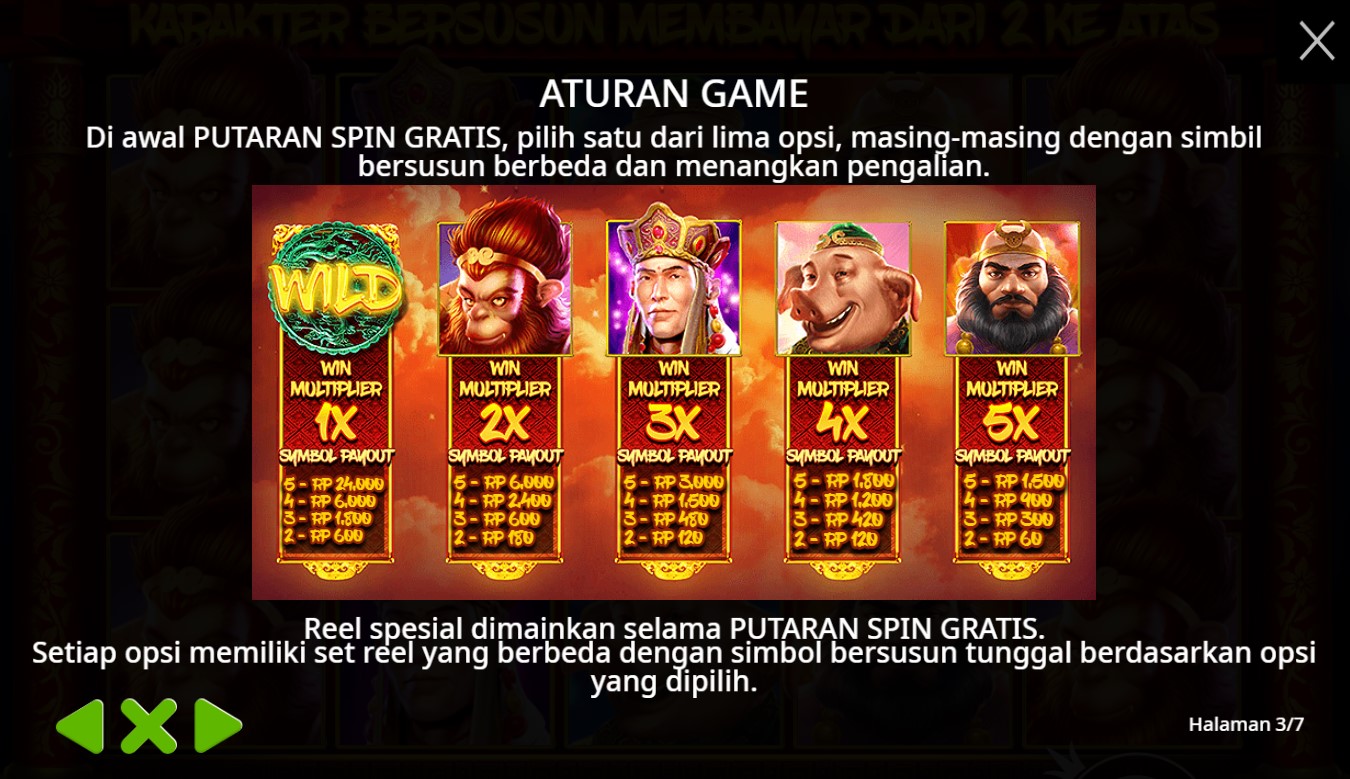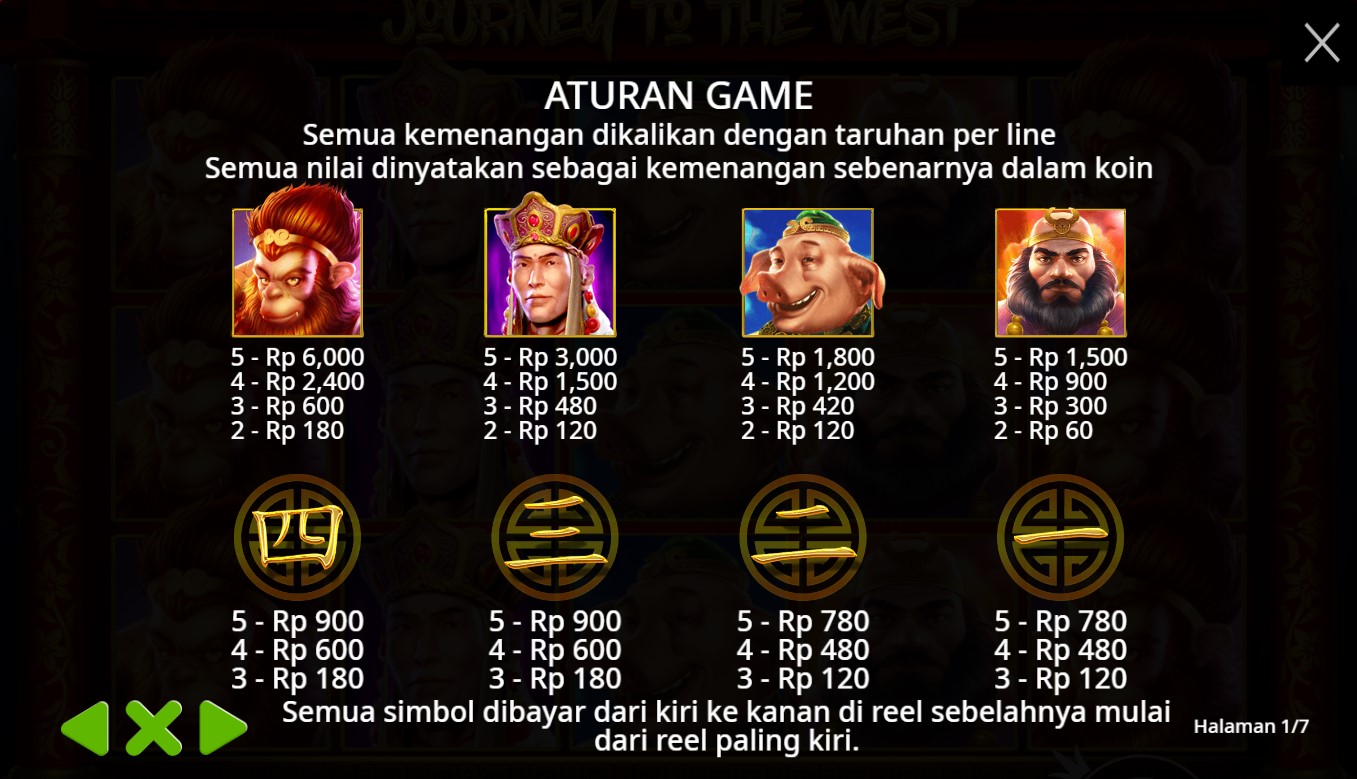 Paytable Slot Online Journey To The West adalah panduan penting bagi para pemain yang ingin memaksimalkan pengalaman bermain mereka. Dalam game ini, berbagai simbol menarik disajikan, masing-masing dengan nilai dan fungsi unik. Simbol utama adalah Sun Wukong, si Raja Kera, yang tidak hanya ikonis tetapi juga memberikan pembayaran tertinggi. Disertai simbol-simbol lain seperti Zhu Bajie, Sha Wujing, dan Tripitaka, setiap karakter membawa cerita dan potensi kemenangan.