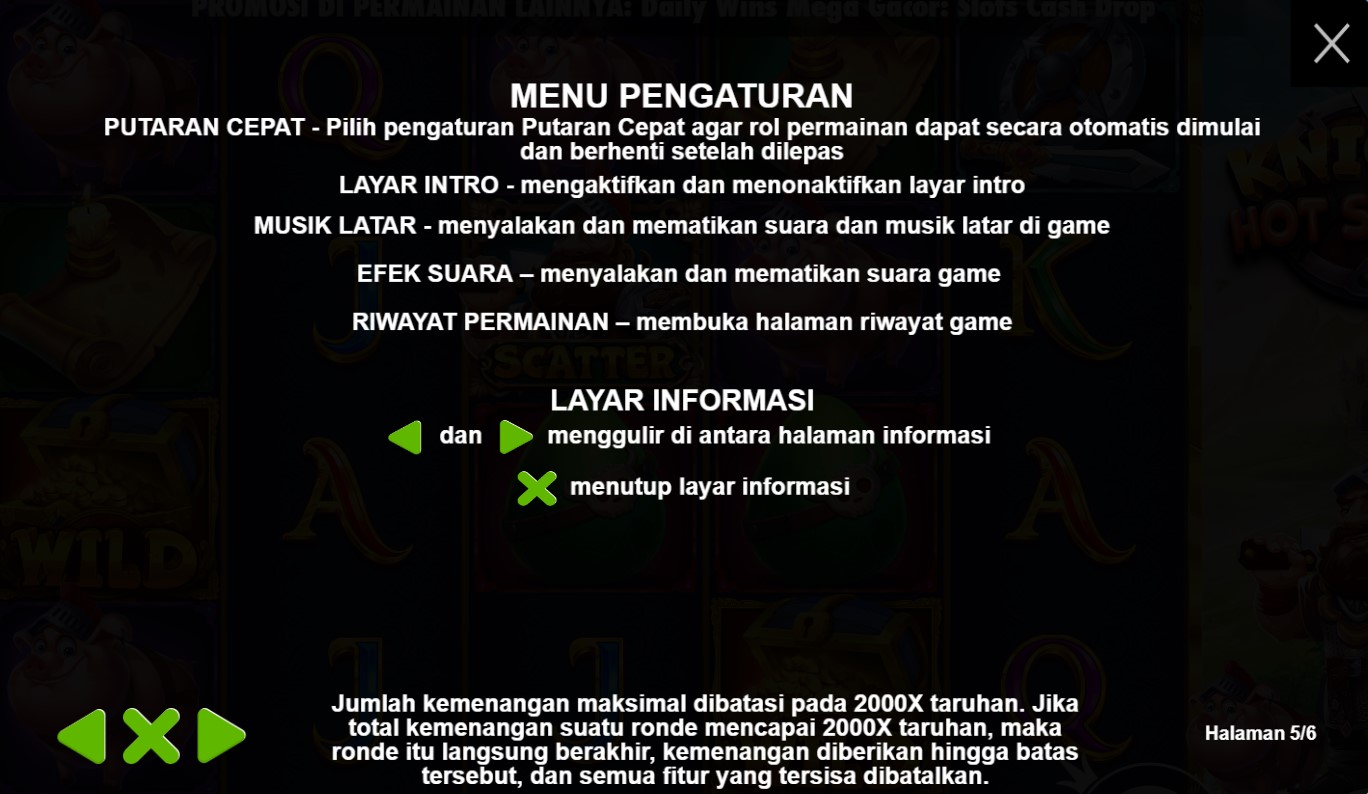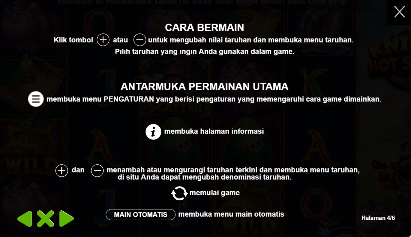 Paytable Knight Hot Spotz adalah panduan penting yang mengungkapkan keindahan dan potensi kemenangan yang menarik dalam permainan slot online terpercaya ini. Dikembangkan oleh Pragmatic Play, permainan ini membawa Anda ke dalam dunia ksatria yang penuh dengan keberanian dan kekayaan. Dalam Paytable Knight Hot Spotz, Anda akan menemukan berbagai simbol yang mencakup pedang, perisai, helm, dan atribut-atribut lainnya yang mencerminkan kejayaan zaman dulu. Panduan ini memberikan informasi lengkap tentang nilai-nilai simbol, kombinasi pemenang, dan fitur-fitur bonus yang menarik, termasuk fitur Hot Spotz yang memicu pengganda kemenangan yang besar. Dengan memahami Paytable Knight Hot Spotz, Anda akan memiliki pengetahuan yang lengkap untuk merencanakan strategi permainan Anda dan meraih kemenangan yang menggiurkan.