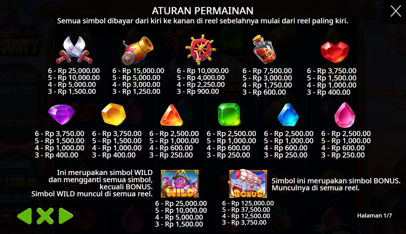 Paytable Slot Online Kraken's Sky Bounty adalah permainan slot online yang menawarkan keseruan dan potensi kemenangan besar bagi para pemain. Didominasi oleh simbol-simbol yang merepresentasikan tema mitologis nan memukau, game ini mampu menciptakan pengalaman bermain yang benar-benar imersif. Simbol-simbol utama yang dapat ditemukan di dalam game meliputi Kraken, monster laut legendaris, pesawat terbang, burung phoenix, dan berbagai simbol bertema awan. Selain itu, terdapat pula simbol liar dan simbol scatter yang berperan penting dalam memicu fitur-fitur bonus yang menguntungkan. Simbol liar dapat menggantikan simbol lain untuk membentuk kombinasi pemenang yang lebih menguntungkan, sementara simbol scatter dapat memicu putaran gratis yang berpotensi menghasilkan jackpot fantastis.